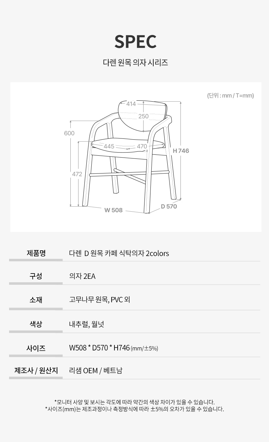 파로마 다렌D 원목 카페 식탁의자 2colors 1+1
