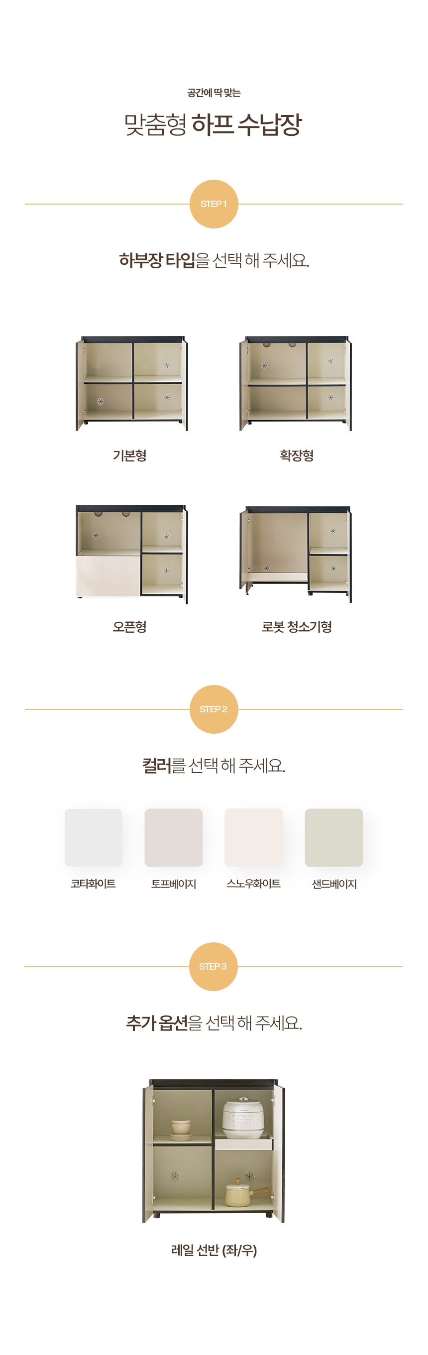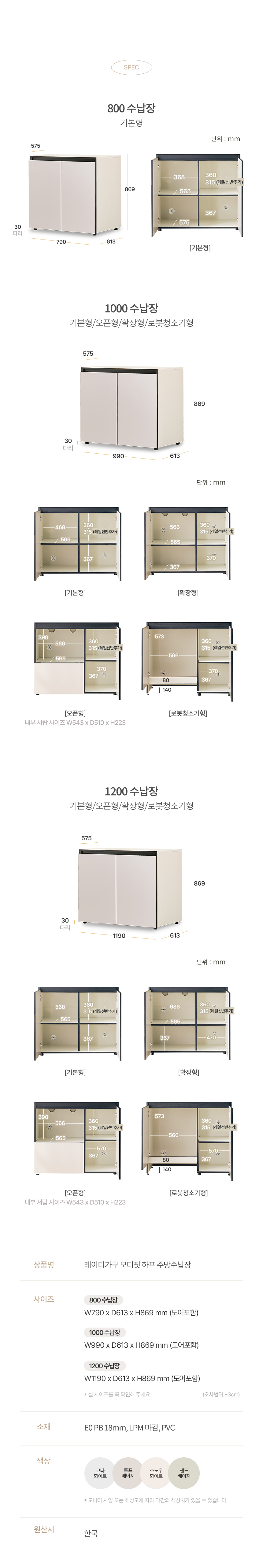 모디핏 하프 냉장고장 맞춤 주방 홈카페 수납장 (800/1000/1200)