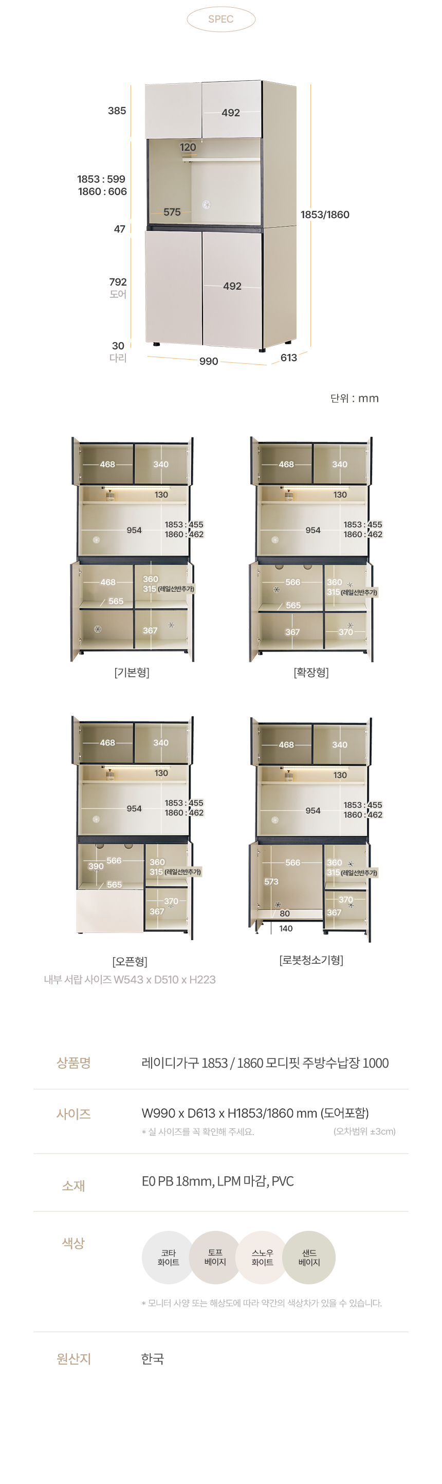 모디핏 1000 냉장고장 맞춤 주방 홈카페 수납장 (1853/1860)