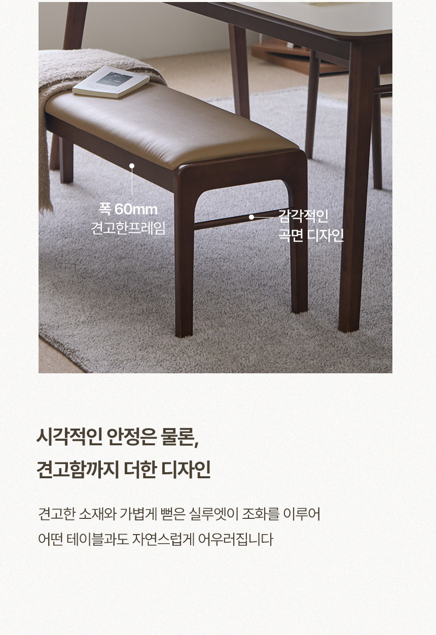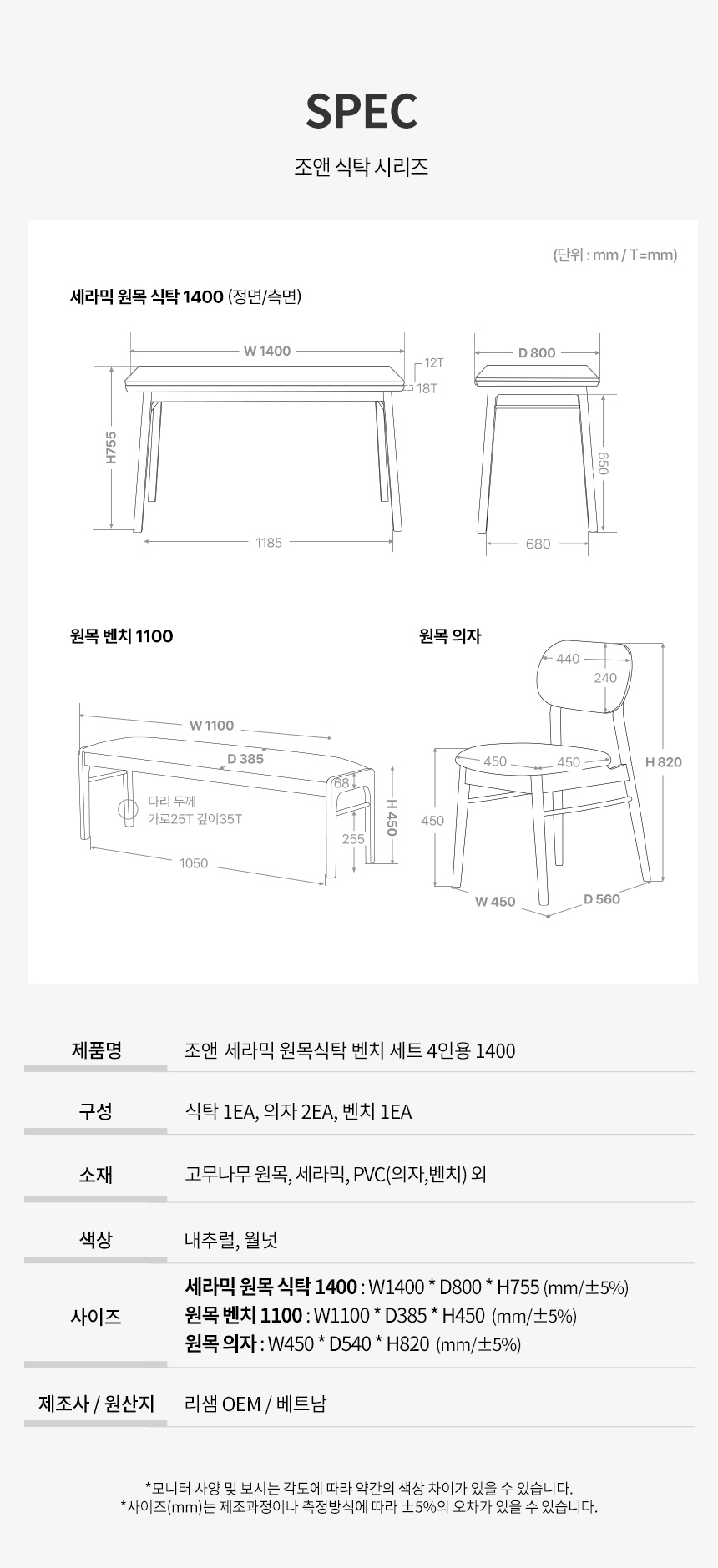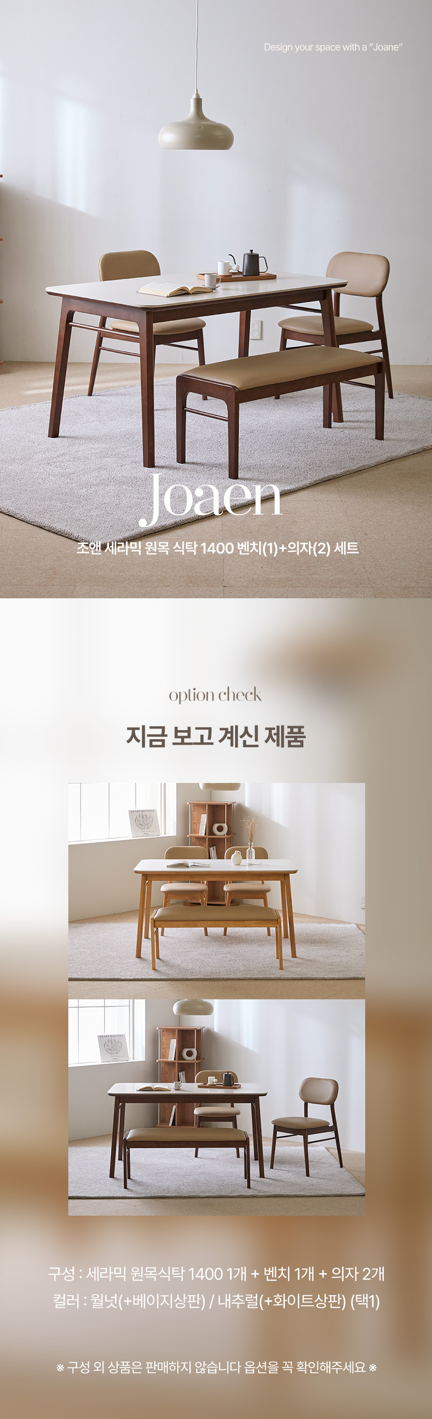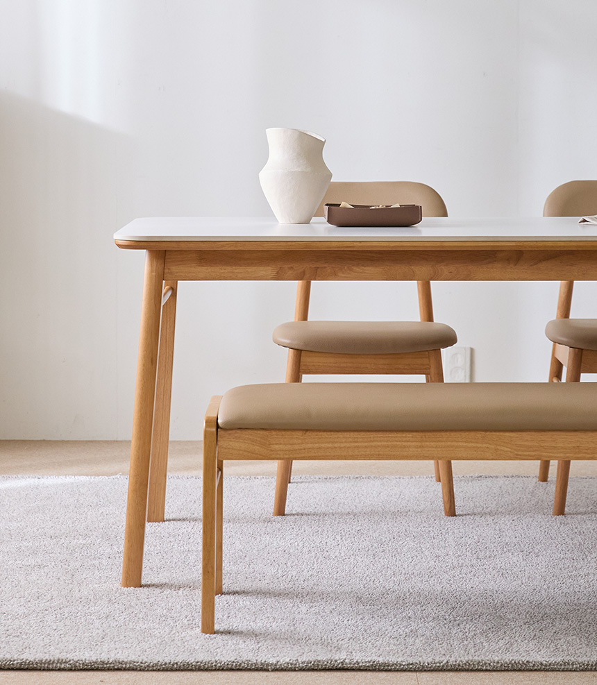 파로마 조앤 세라믹 원목식탁 벤치 세트 4인용 1400 (벤치1 의자2)