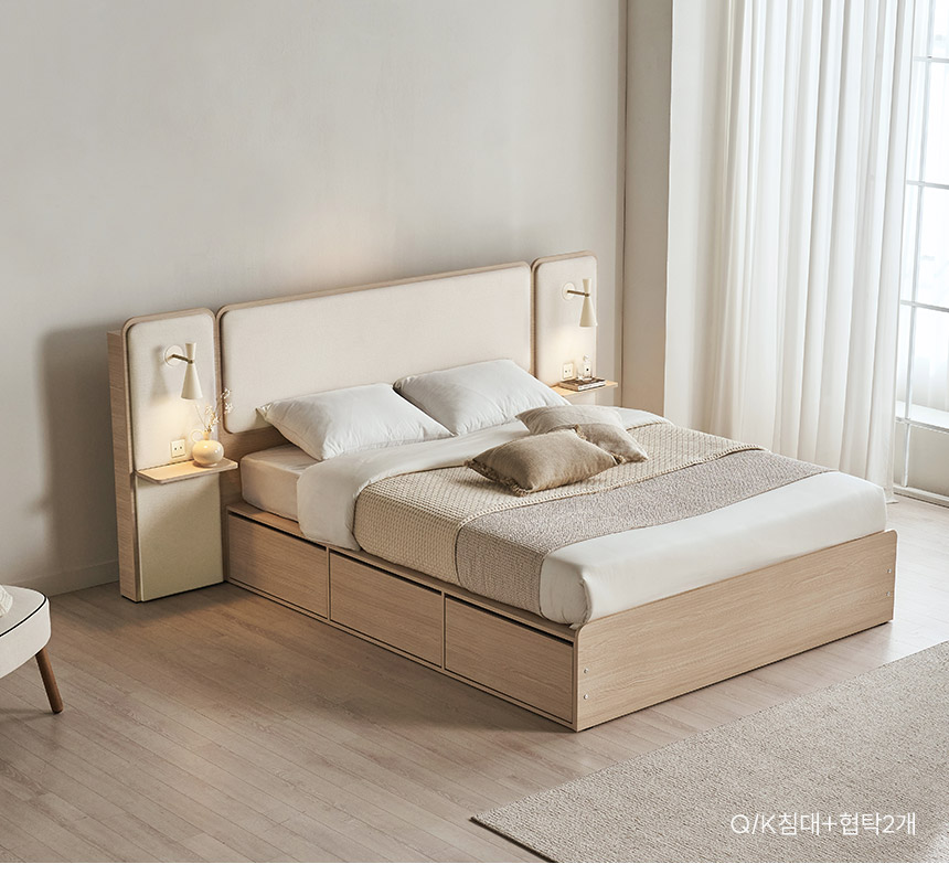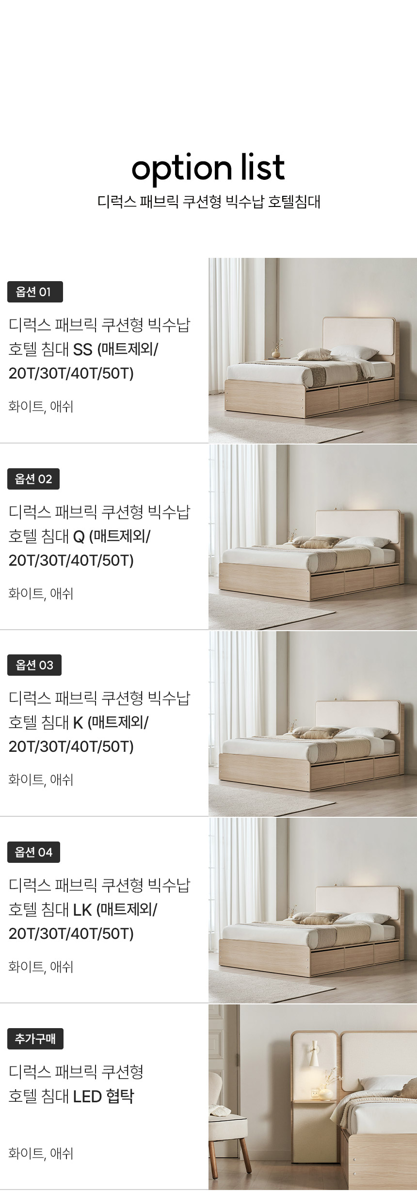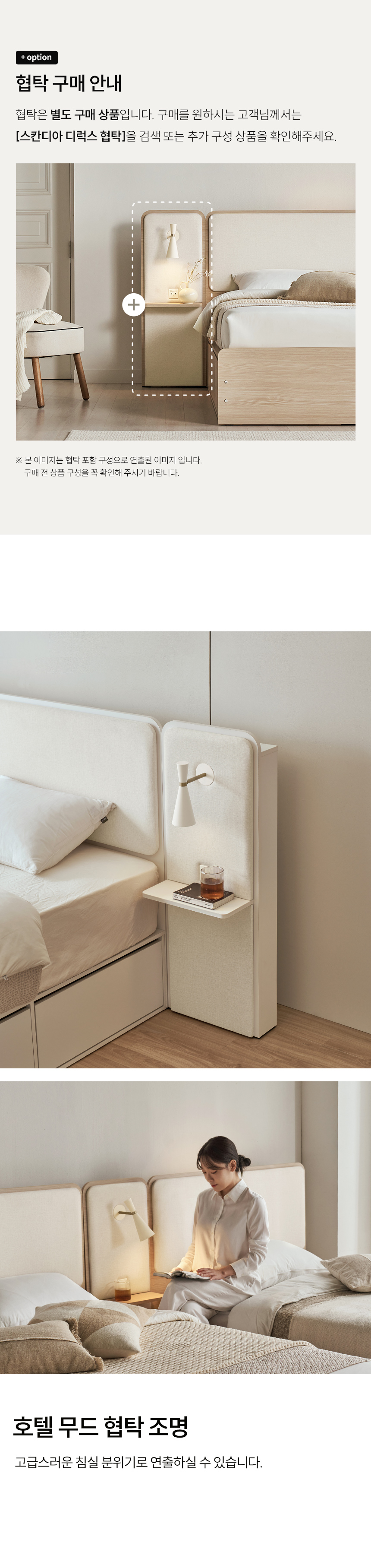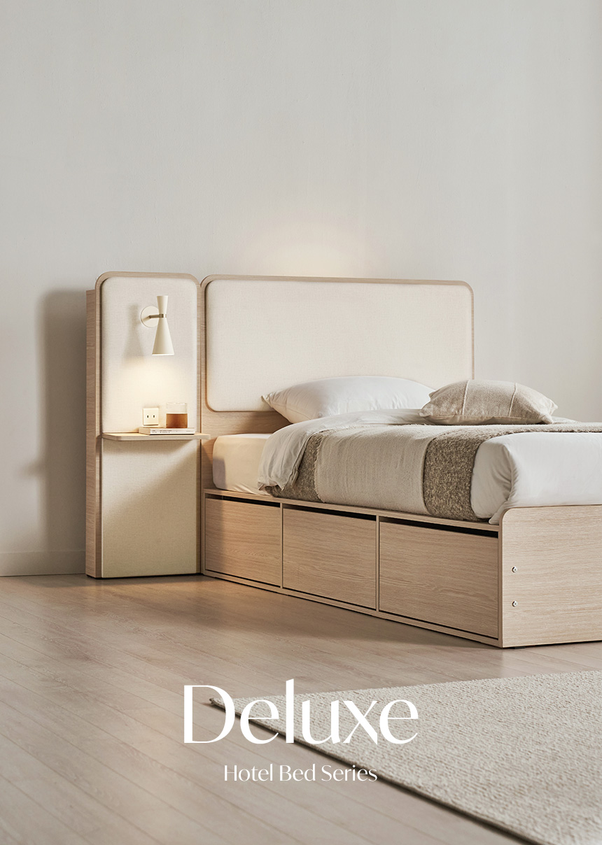 스칸디아 디럭스 패브릭 쿠션형 빅수납 호텔 침대 (SS/Q/K/LK)