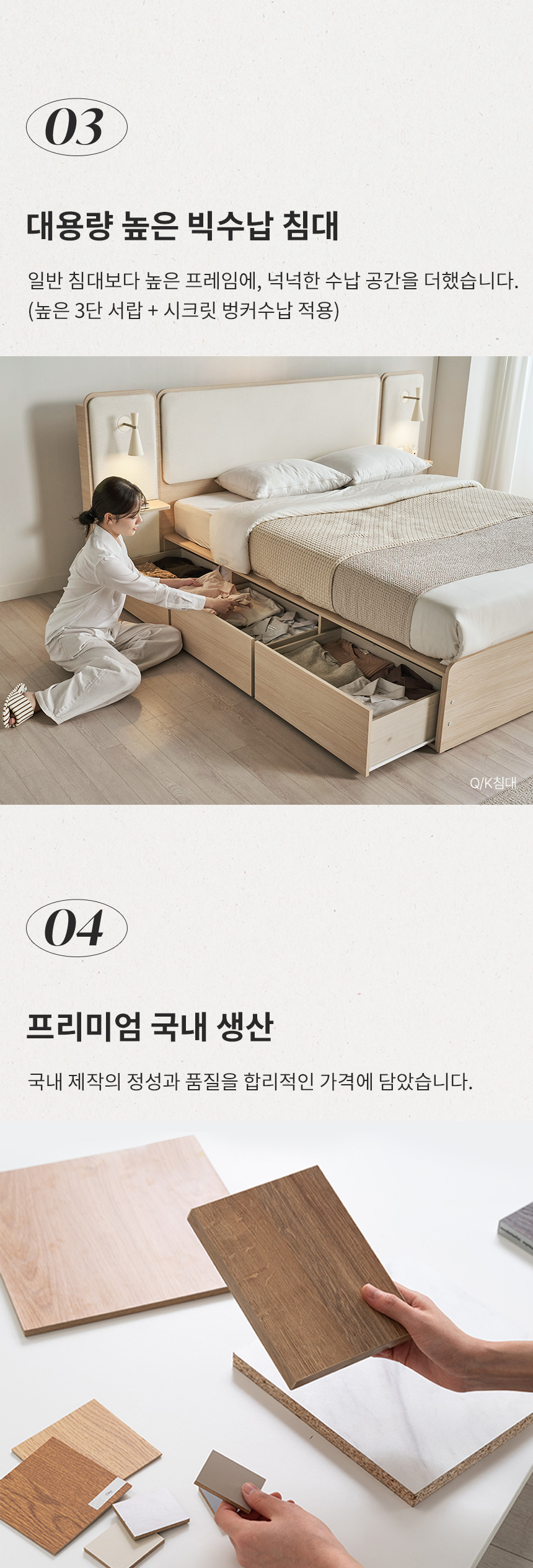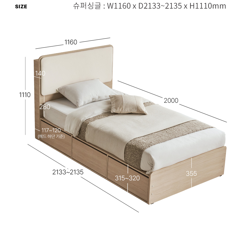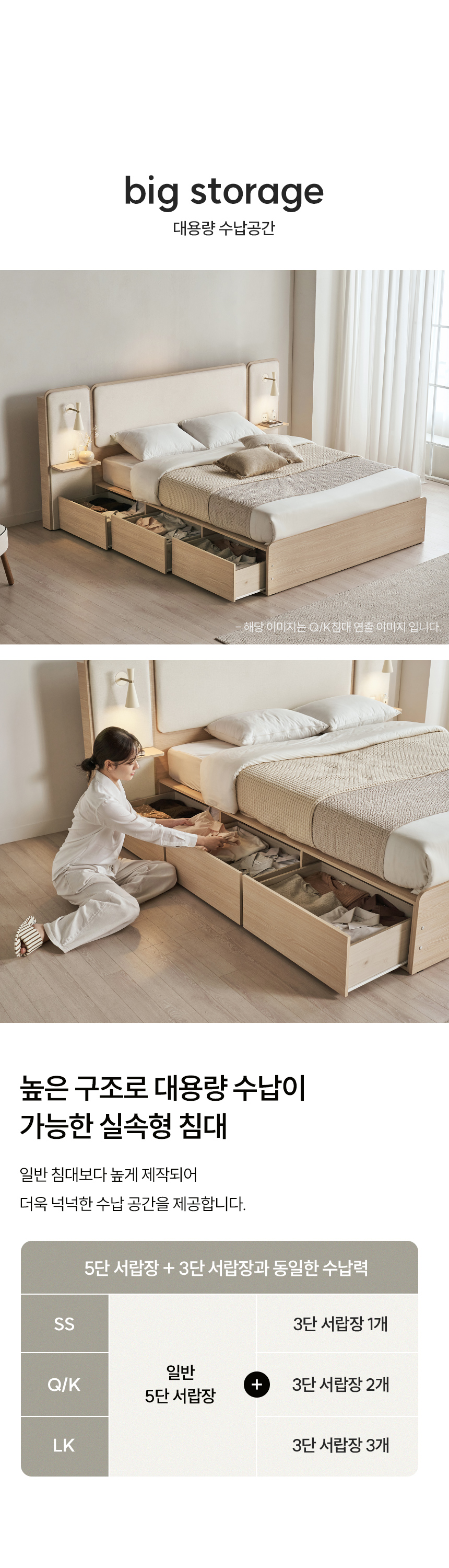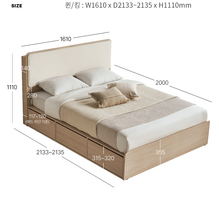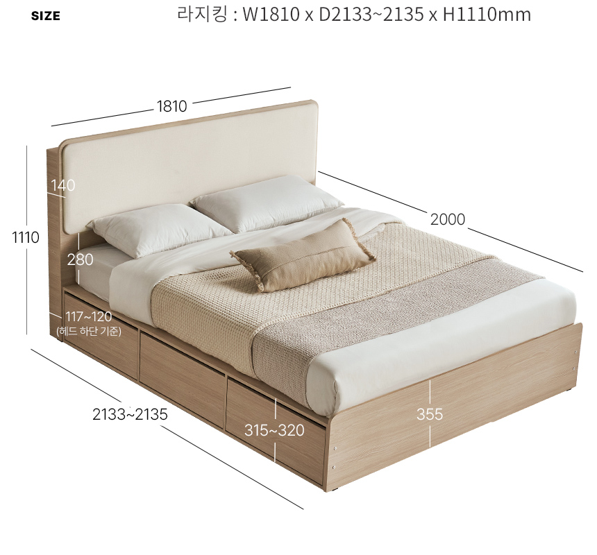 스칸디아 디럭스 패브릭 쿠션형 빅수납 호텔 침대 (SS/Q/K/LK)