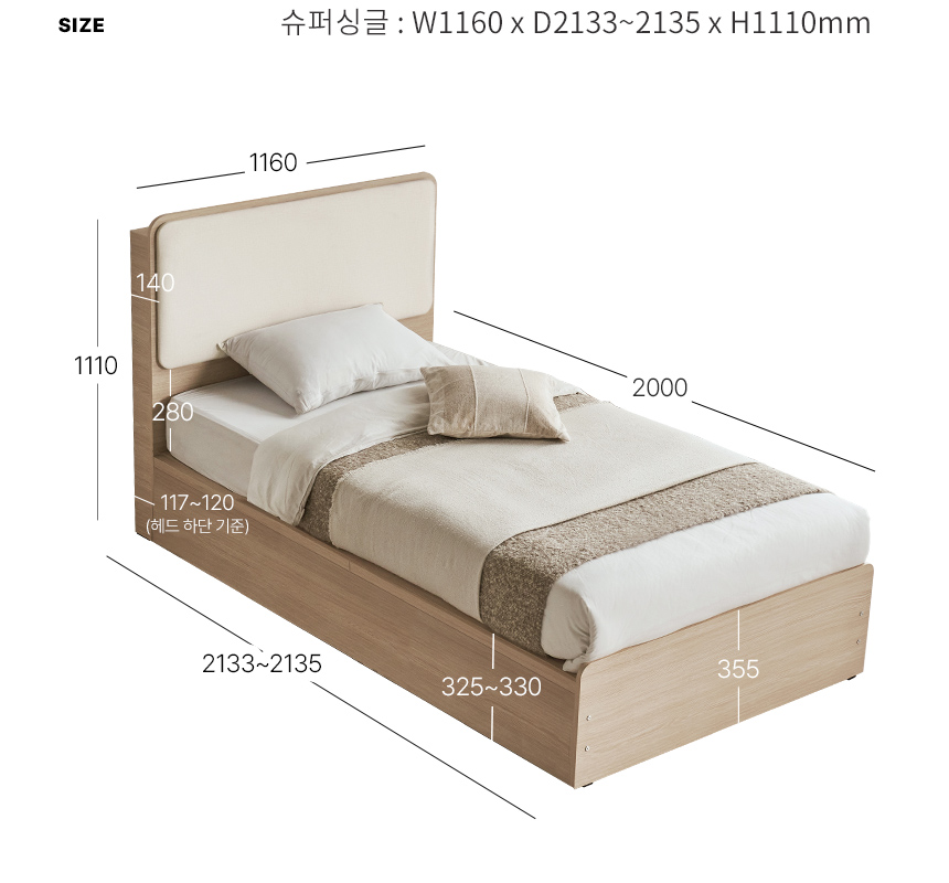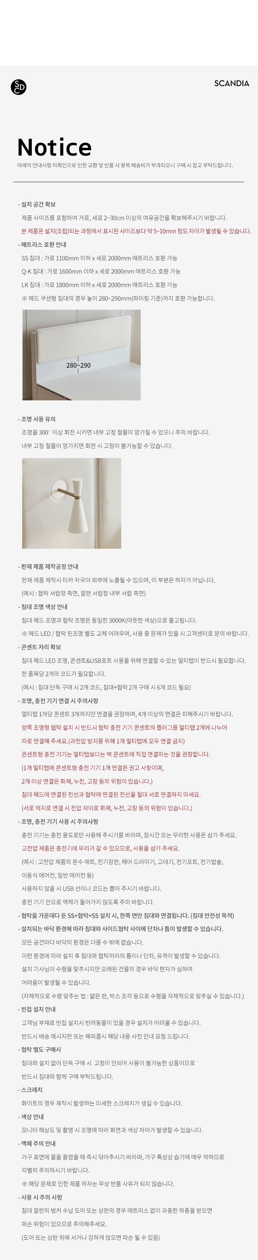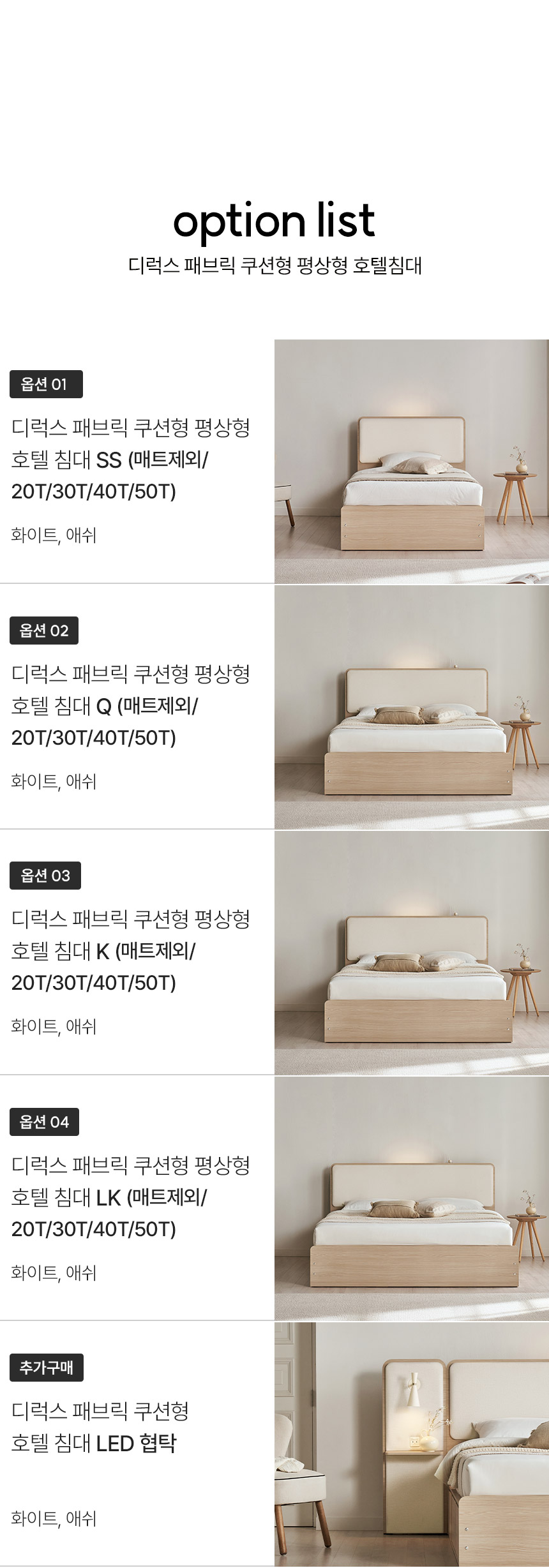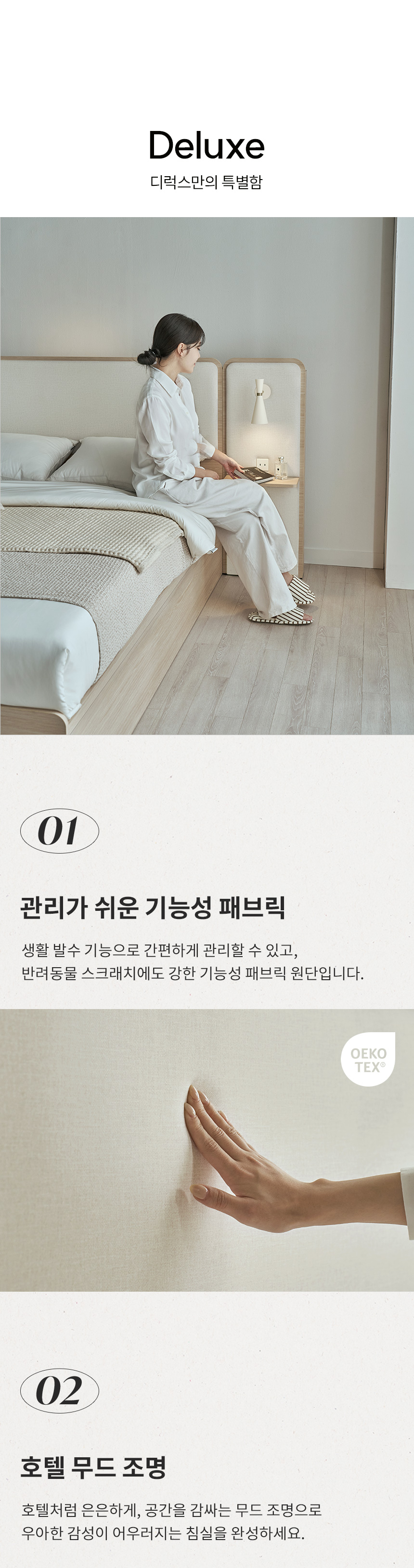 스칸디아 디럭스 패브릭 쿠션형 평상형 호텔 침대 (SS/Q/K/LK)