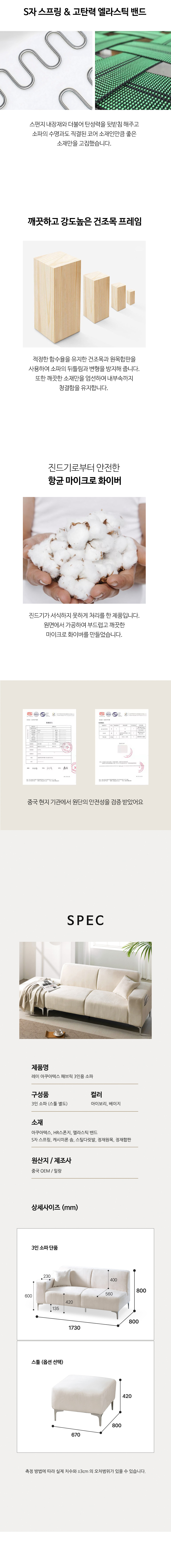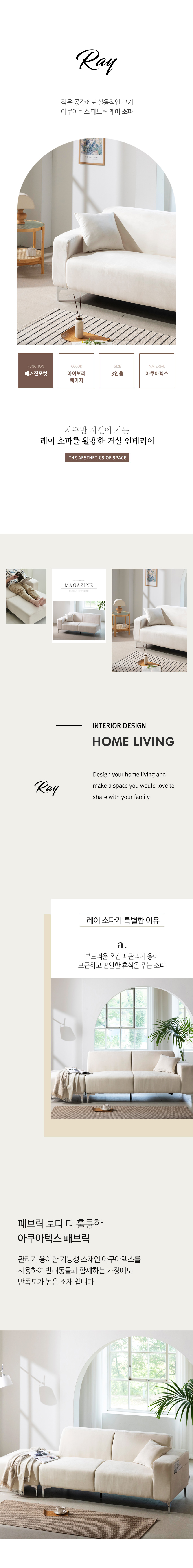 밀랑 레이 아쿠아텍스 패브릭 3인용 소파