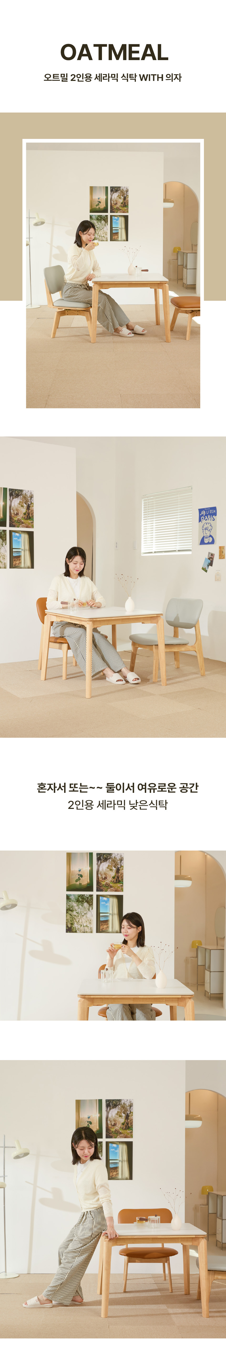 오트밀 세라믹 2인 낮은식탁 세트 800 의자2