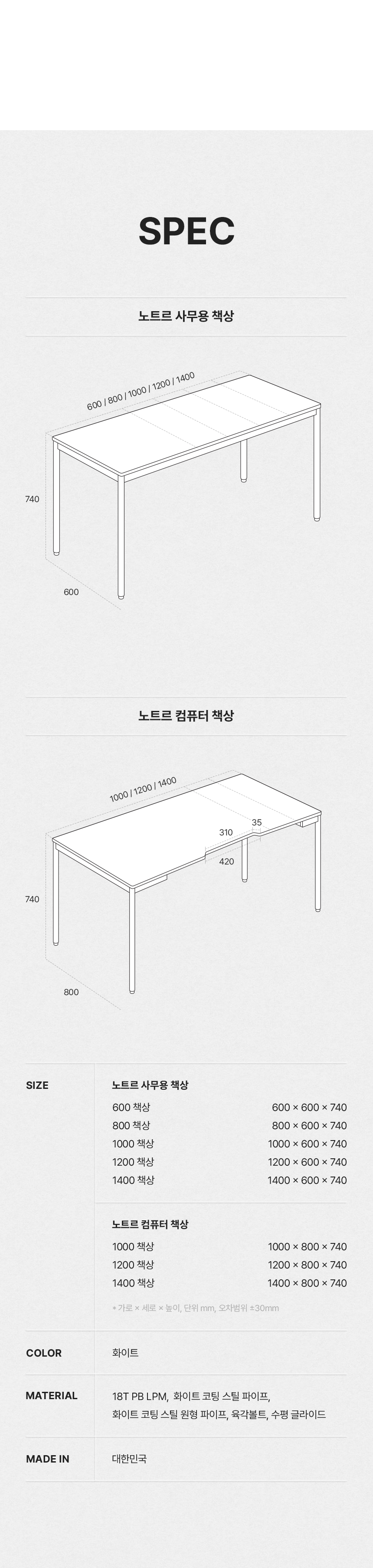 홈리 노트르 오피스 컴퓨터 화이트 책상 데스크 600/800/1000/1200/1400