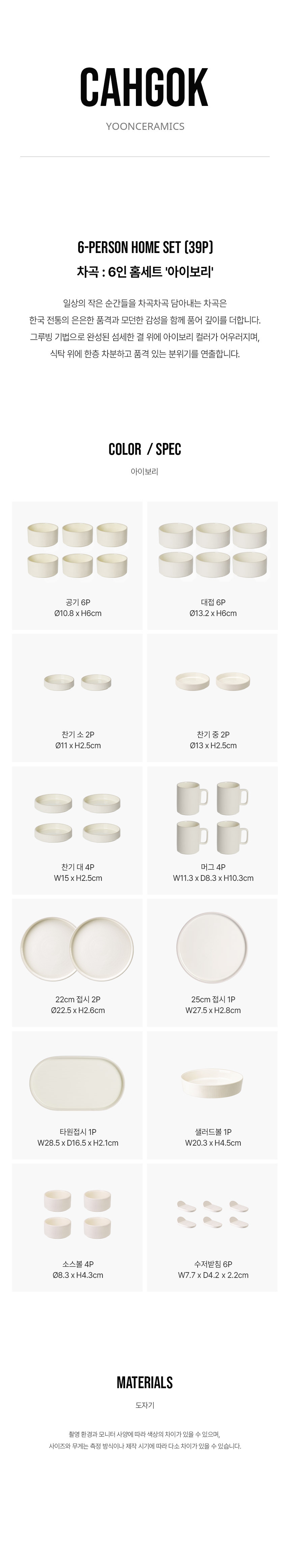 윤도자기 차곡 6인 홈세트 39P 아이보리