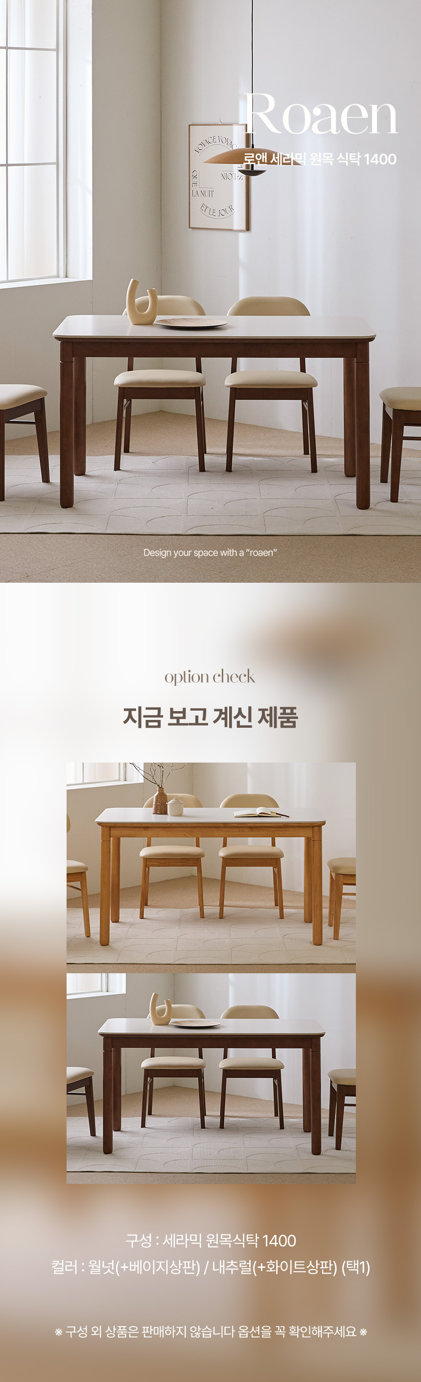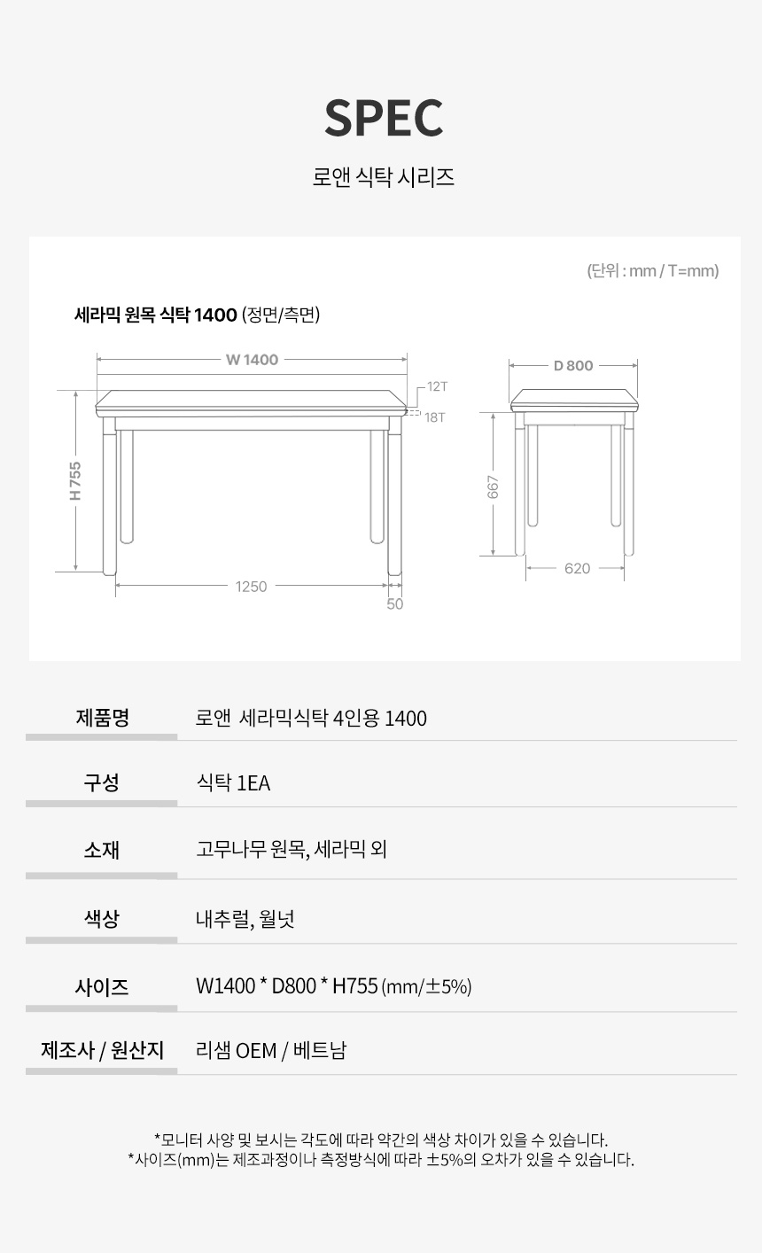 파로마 로앤 세라믹 원목식탁 4인용 1400 2colors