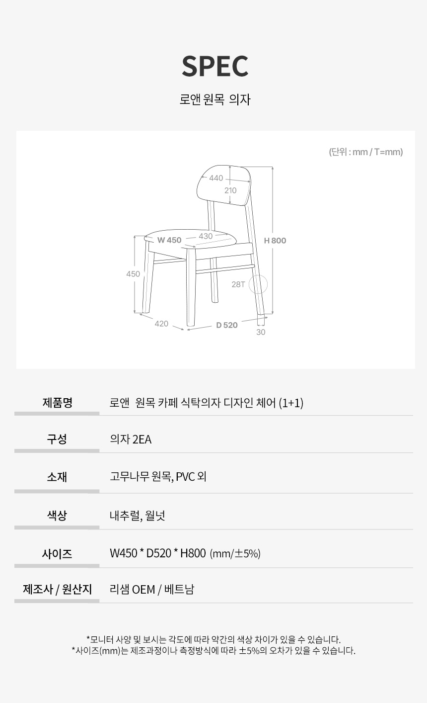 파로마 로앤 원목 카페 식탁의자 디자인 체어 2개