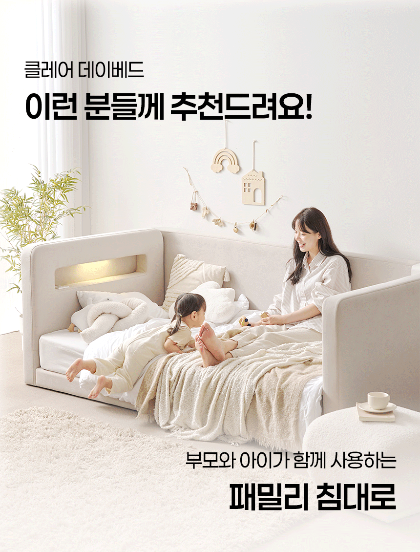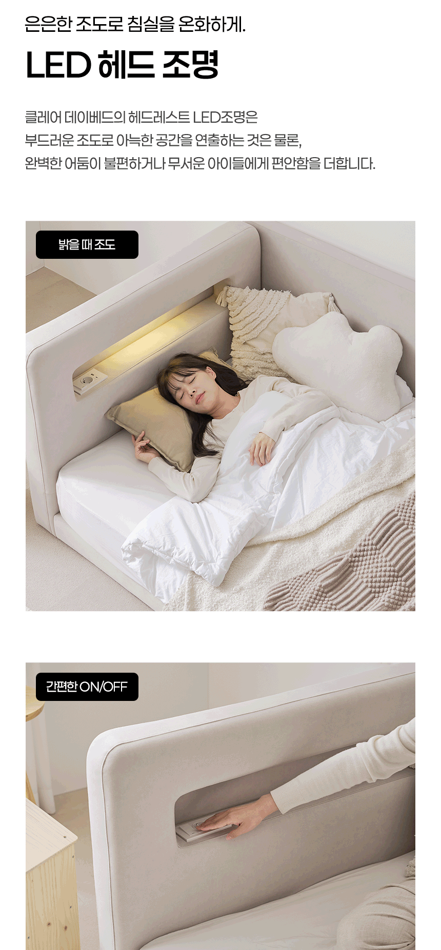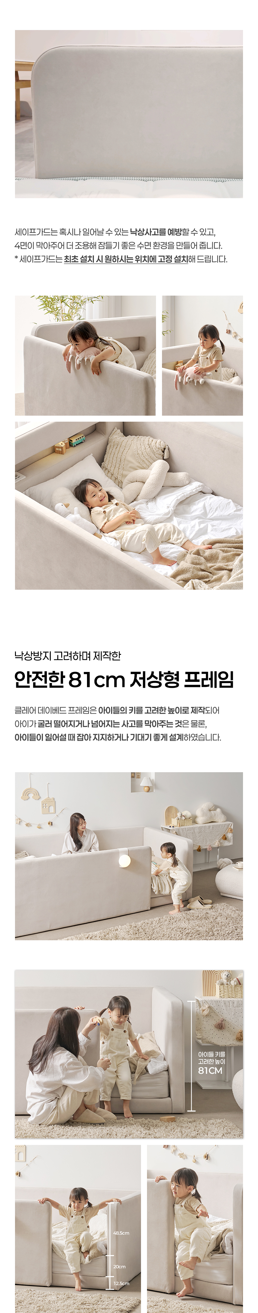 [특가 ~2/9](한샘몰pick) 보니애 클레어 데이베드 조야 패브릭 저상형 아기 침대 SS (가드/매트리스/수유등 선택)