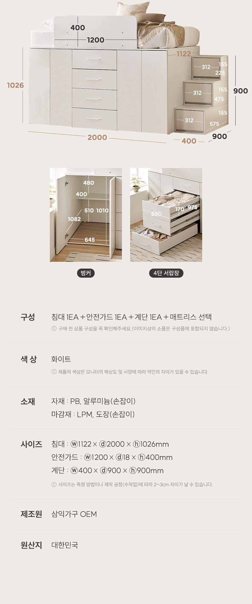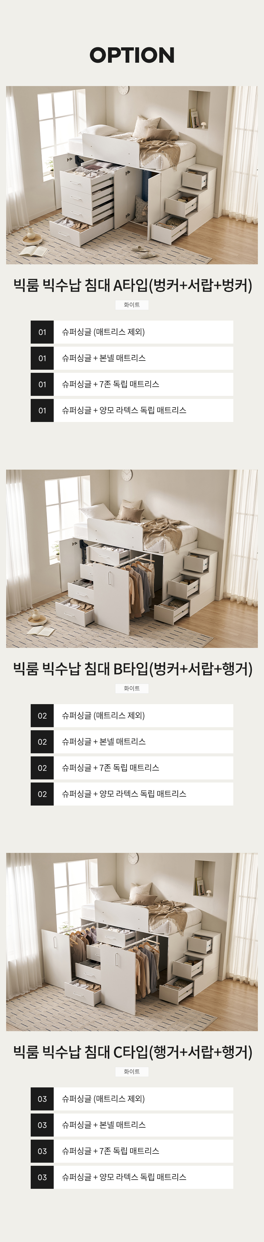 삼익가구 빅룸 빅수납 침대 벙커+서랍+행거 풀세트 시리즈