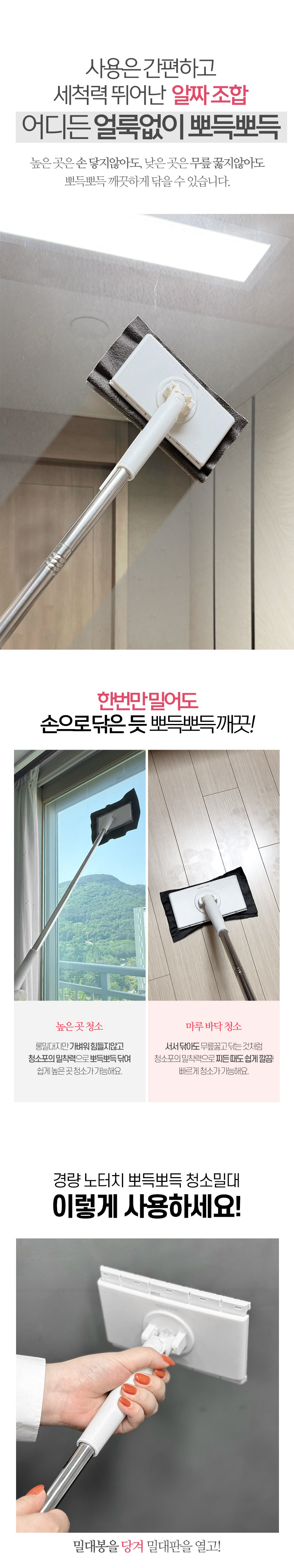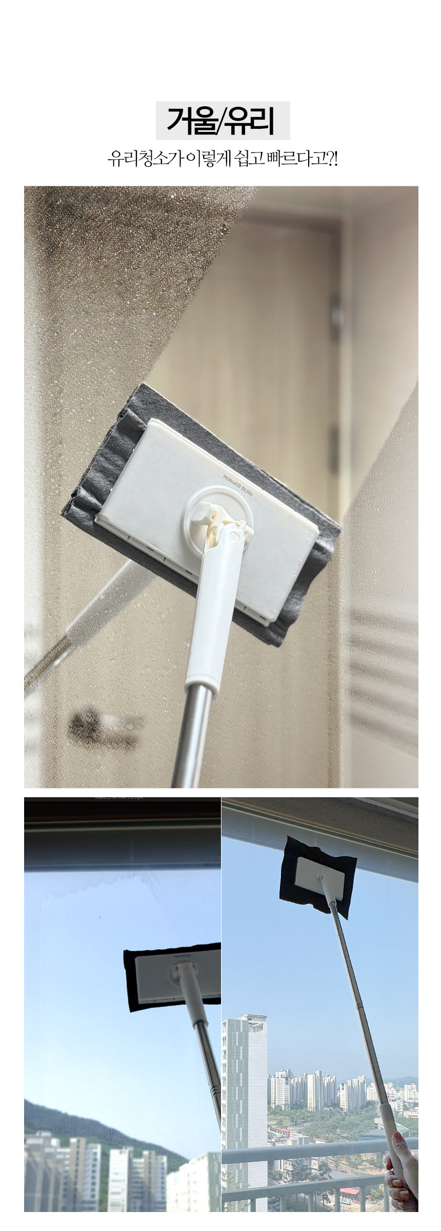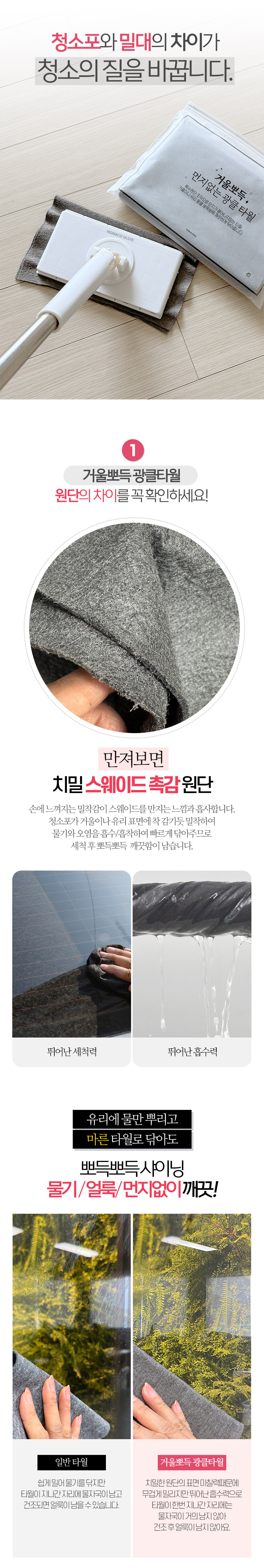 한콕 유리창 거울 청소기 + 전용 청소포 세트 청소포 원터치 장착