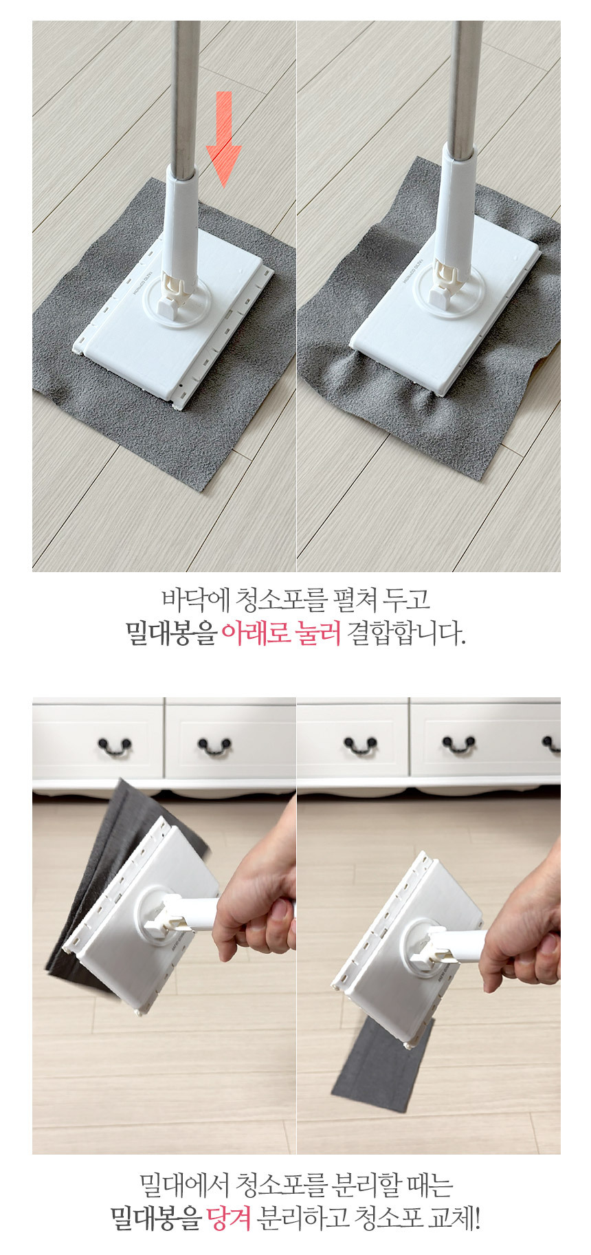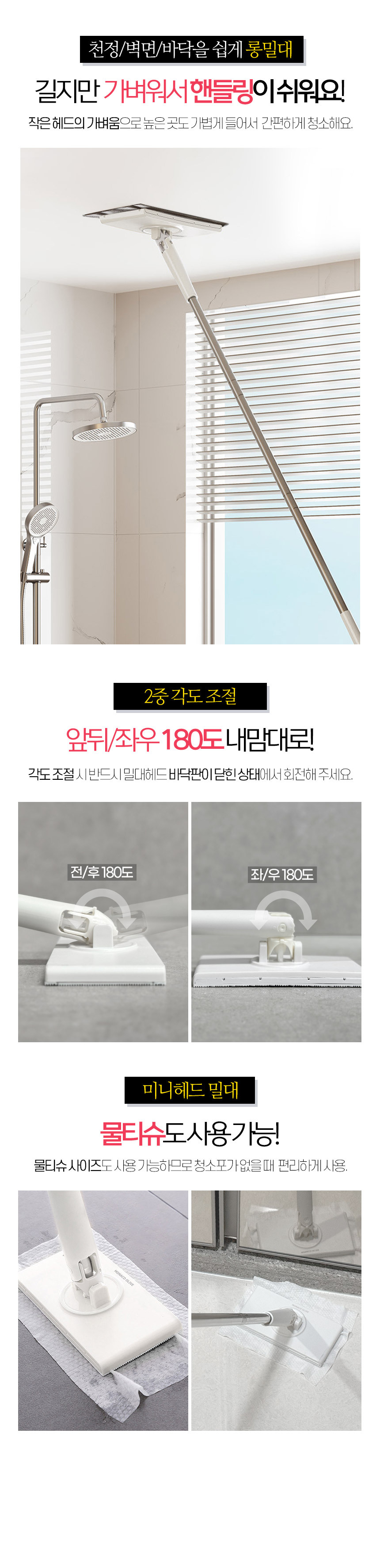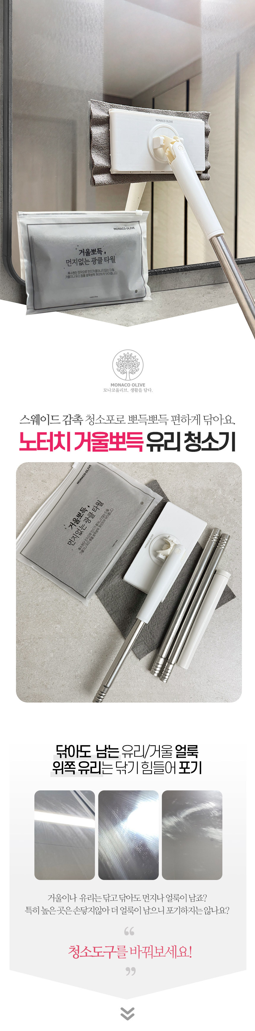 한콕 유리창 거울 청소기 + 전용 청소포 세트 청소포 원터치 장착