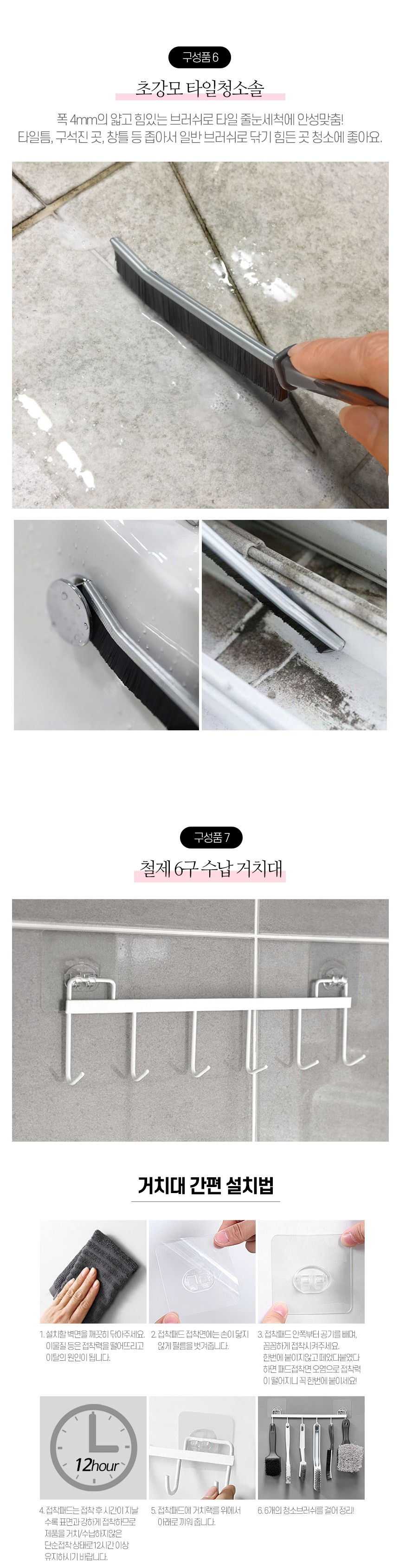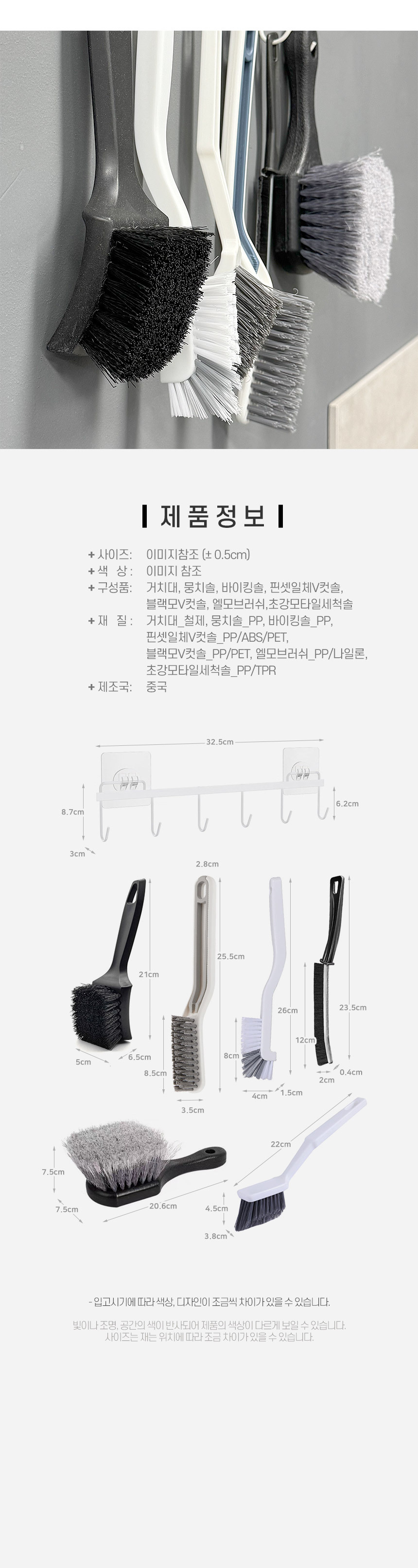 청소광 7종 브러쉬 걸이 세트 주방 욕실 틈새 창틀 청소솔 모음