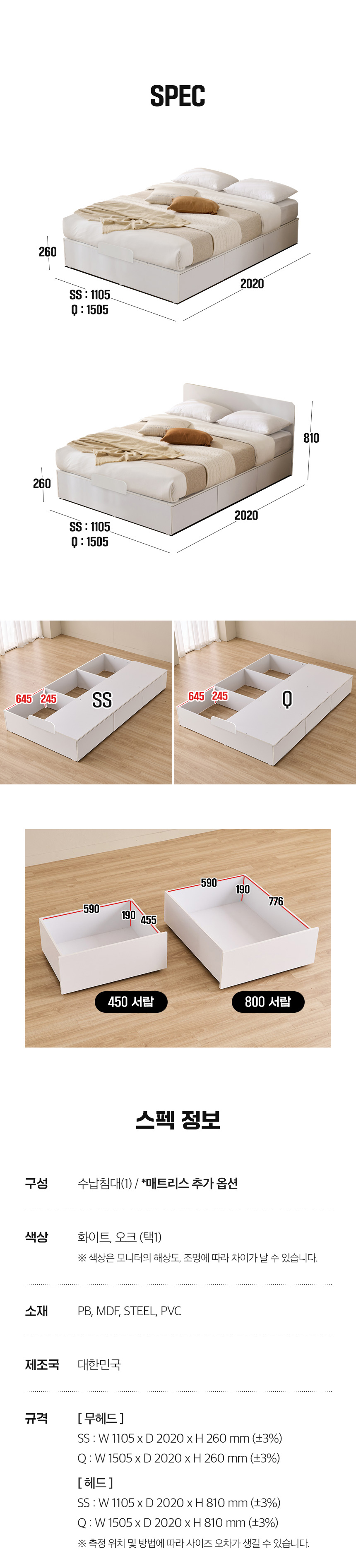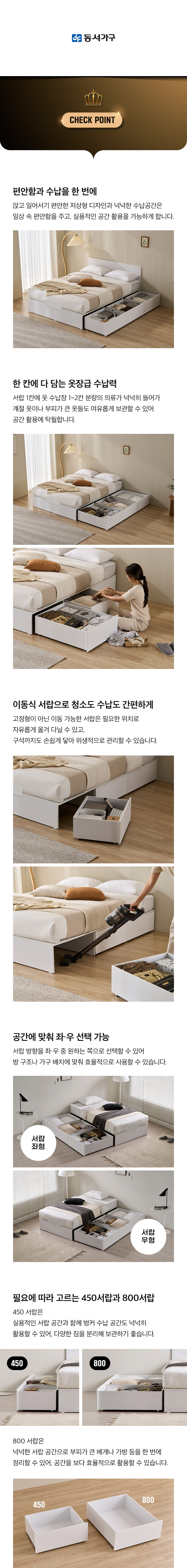 [특가 ~2/9]동서가구 유주얼 450/800 수납침대 SS/Q (헤드, 매트 선택)