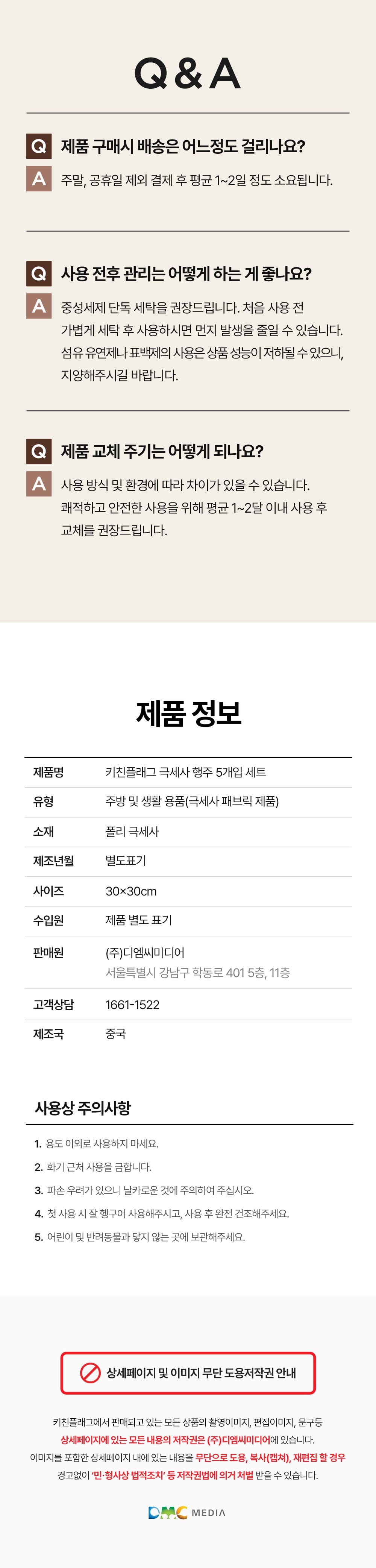 [Kitchen Flag] 키친플래그 다용도 극세사 행주 5종 세트