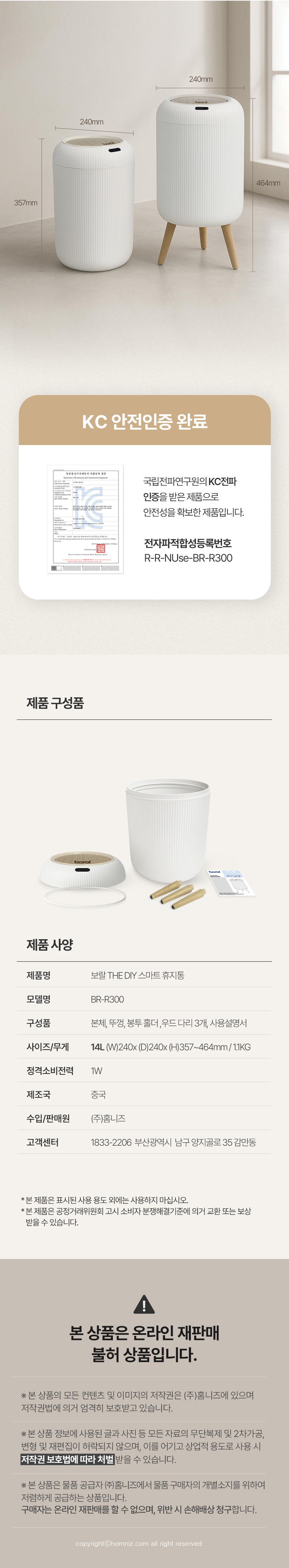 [Boral] 보랄 우드디자인 The DIY 스마트 센서 14L 자동센서 휴지통 BR-R300