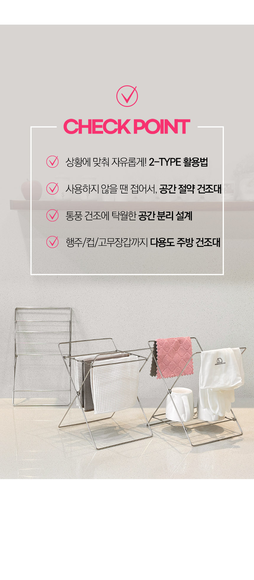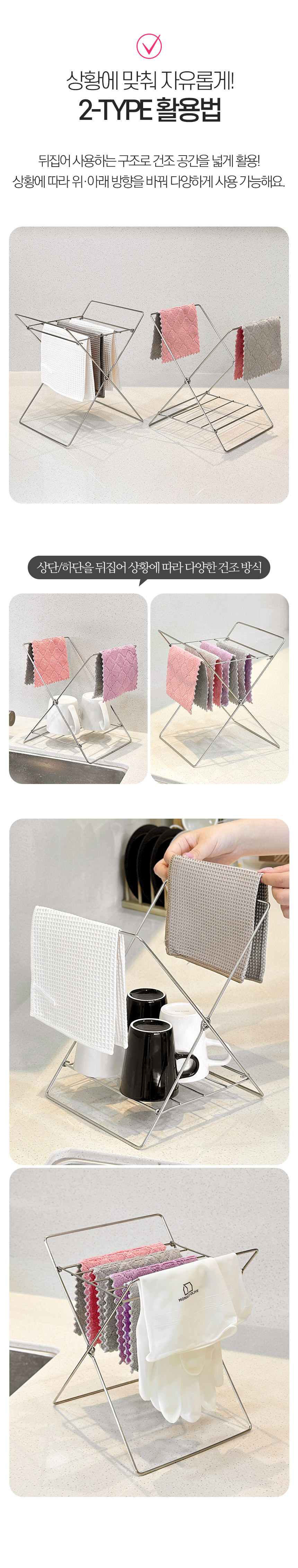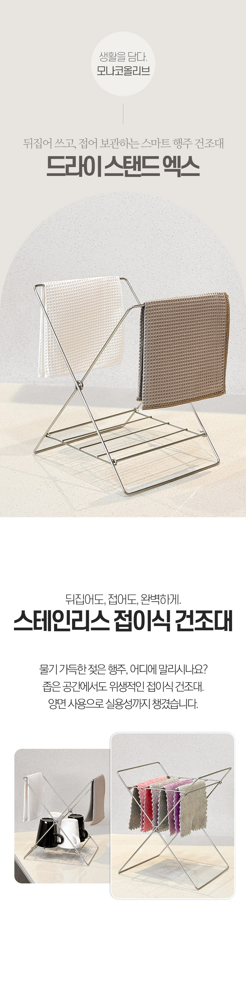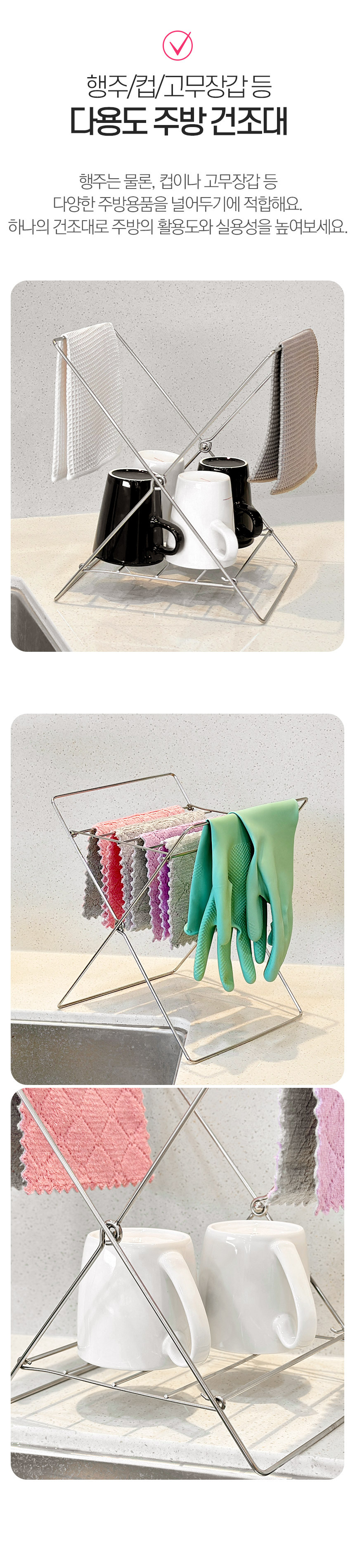 드라이스텐드엑스 접이식 행주걸이 컵건조대 주방 정리대