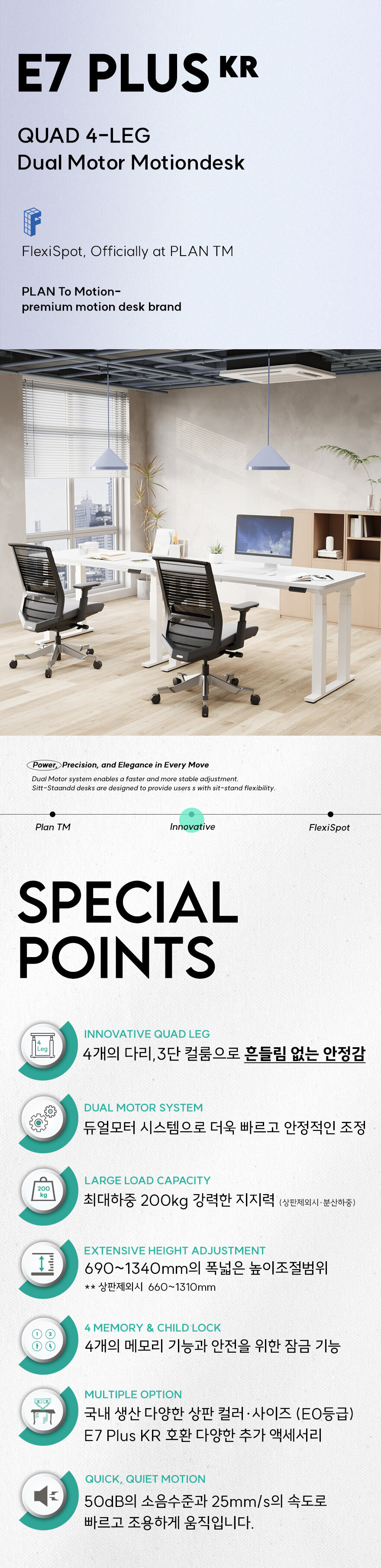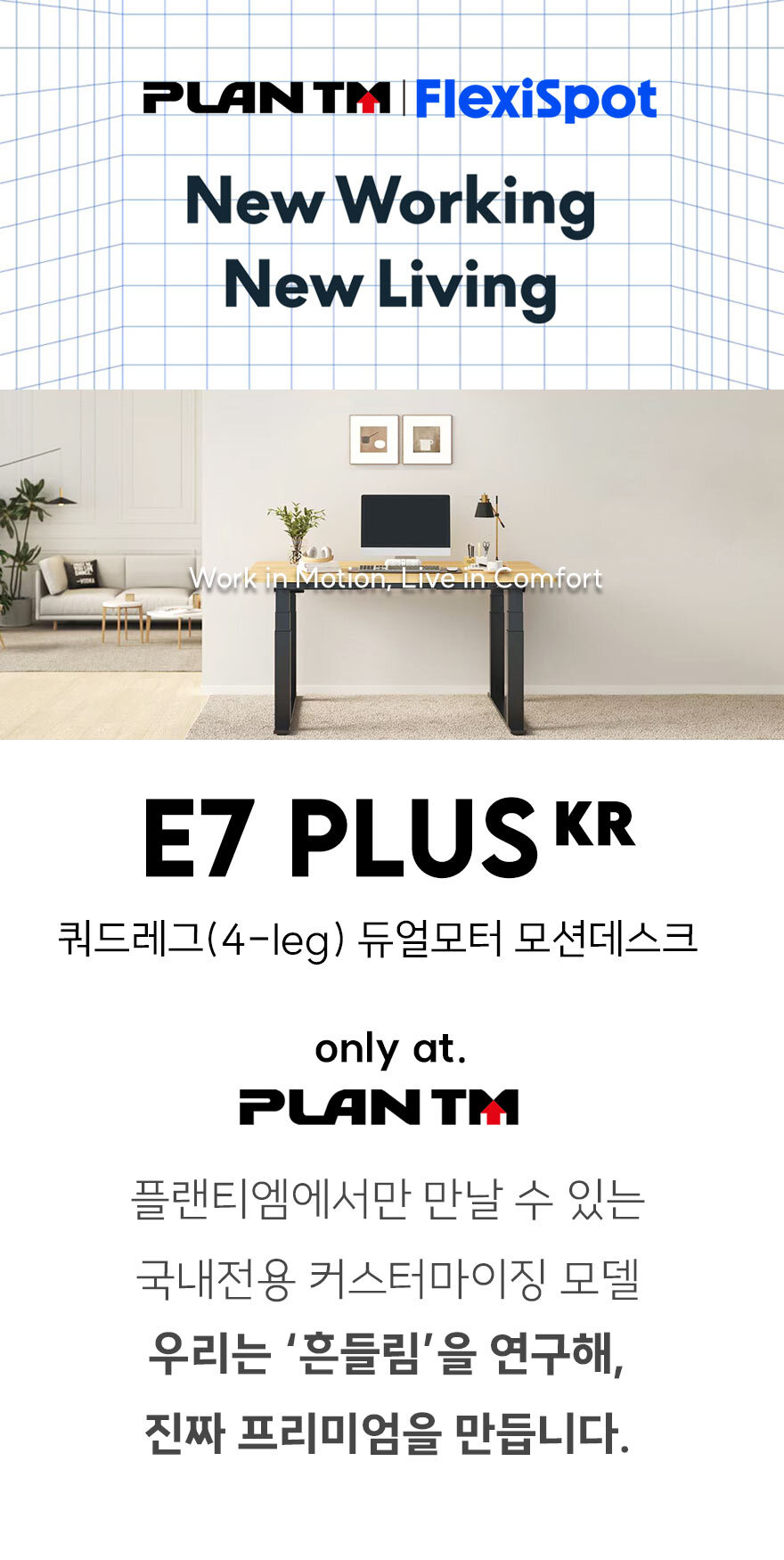 [특가 ~2/9]플랜티엠 FlexiSpot E7 PLUS KR 쿼드레그 듀얼모터 모션데스크 스탠딩책상 사무실 학생 작업대 게이밍