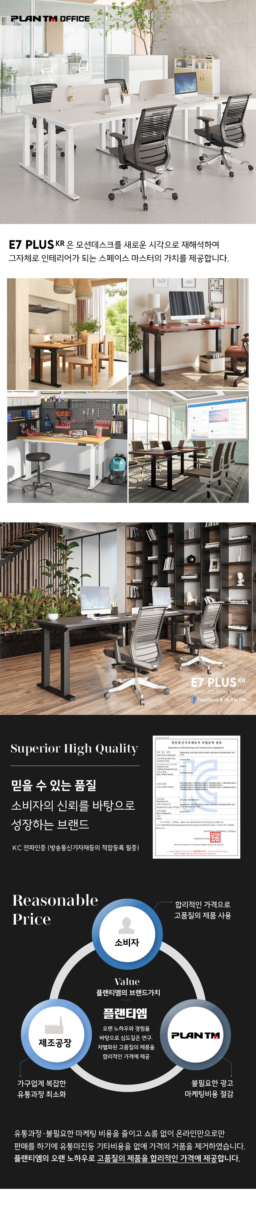 [특가 ~12/08]플랜티엠 FlexiSpot E7 PLUS KR 쿼드레그 듀얼모터 모션데스크 스탠딩책상 사무실 학생 작업대 게이밍
