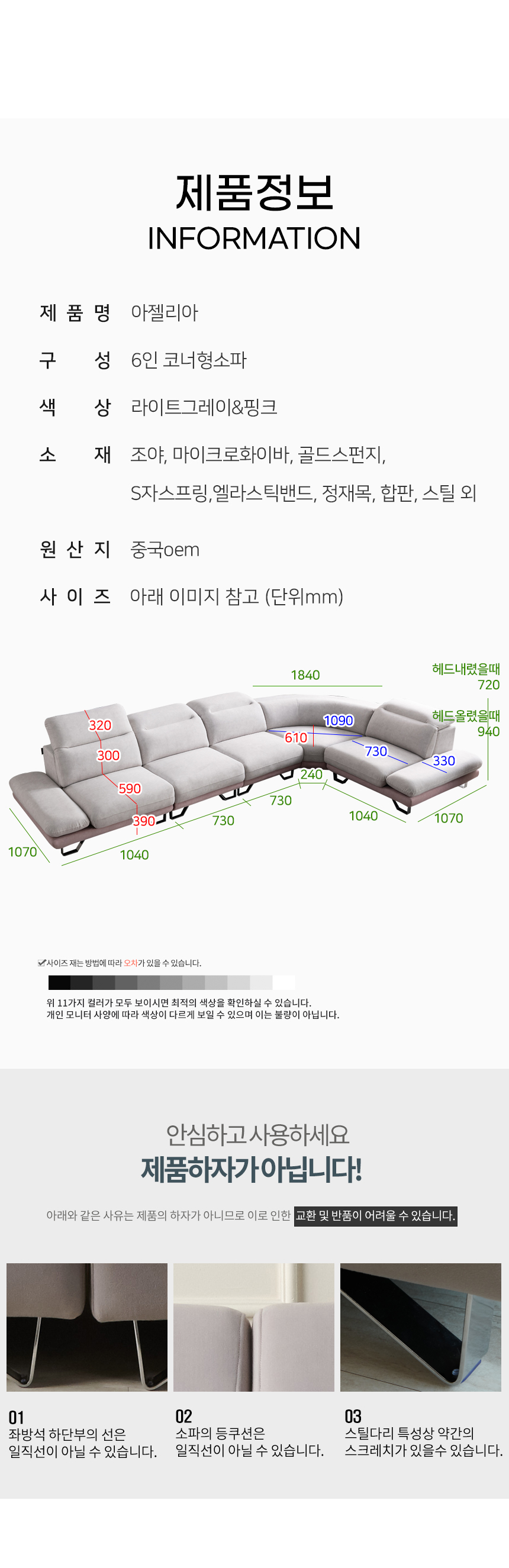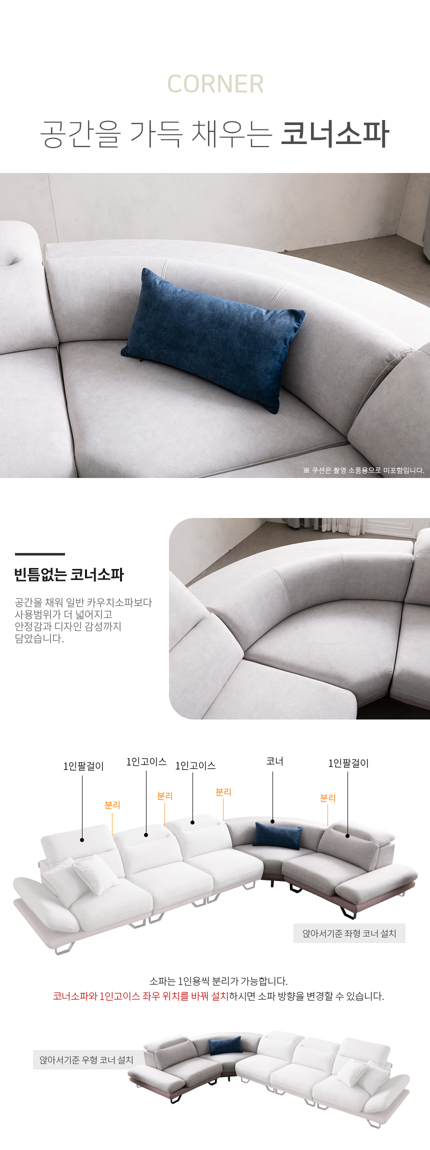 우아미가구 아젤리아 코너 무빙헤드 조야 이지클린 패브릭 소파