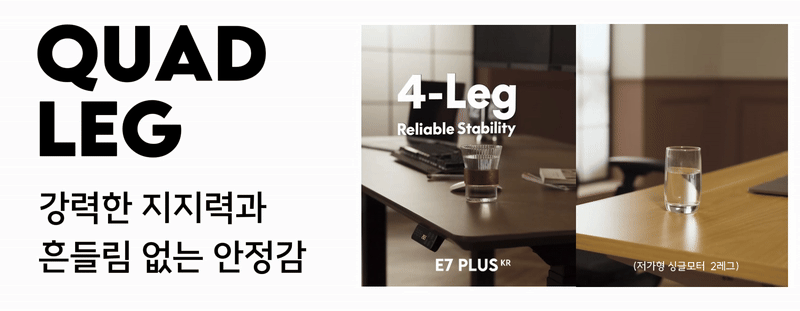 플랜티엠 FlexiSpot E7 PLUS KR 쿼드 4레그 듀얼모터 모션데스크 프레임 스탠딩책상 다리