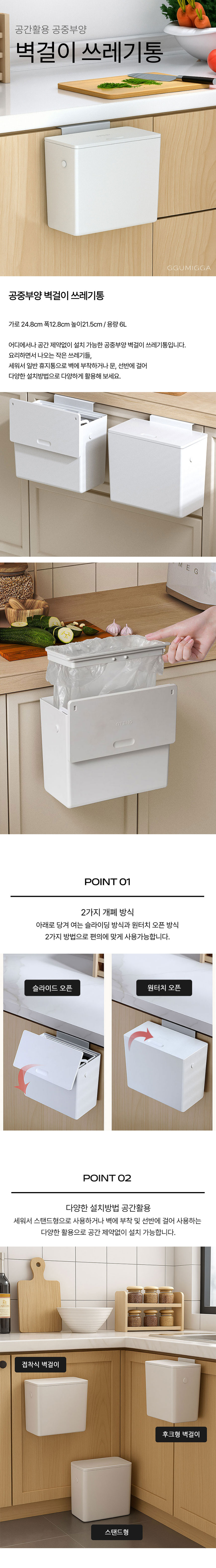 꾸미까 공중부양 벽걸이 쓰레기통 6L