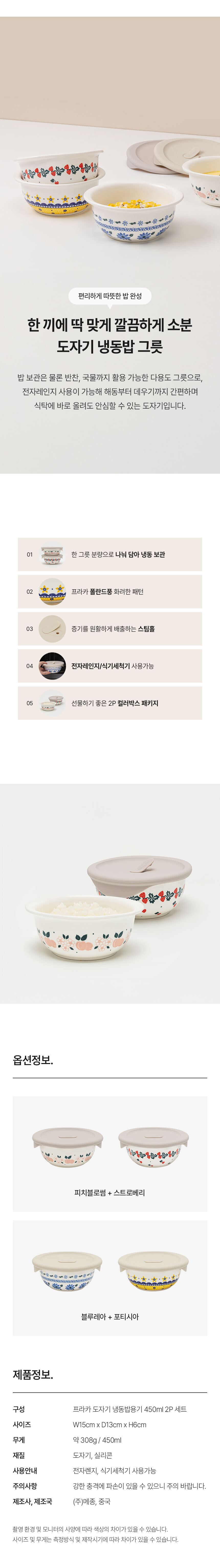 프라카 폴란드풍 도자기 냉동밥용기 450ml 4P 세트