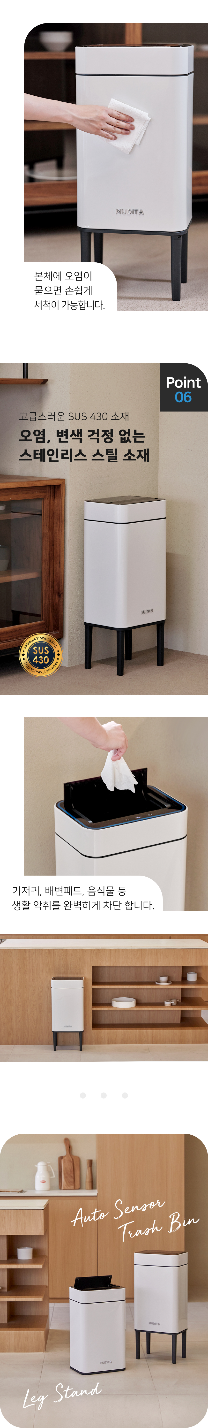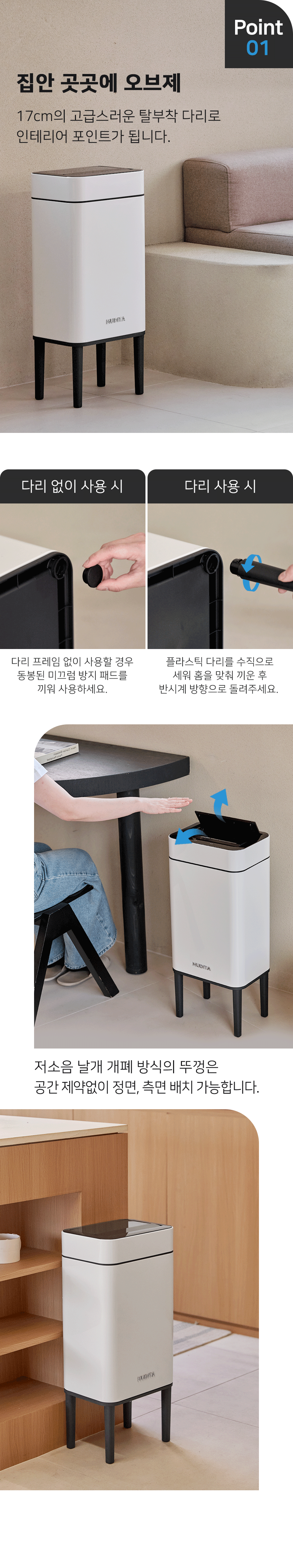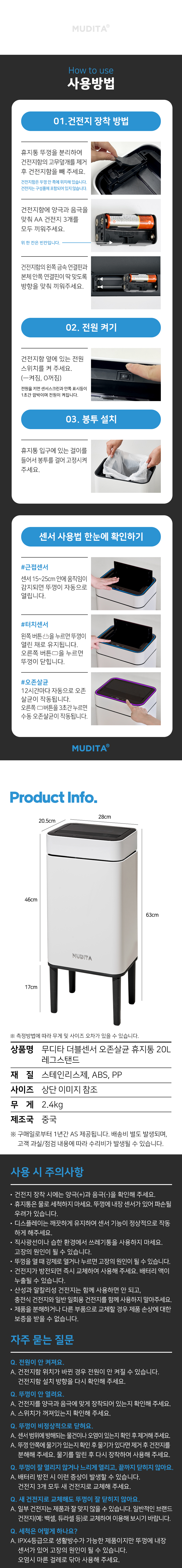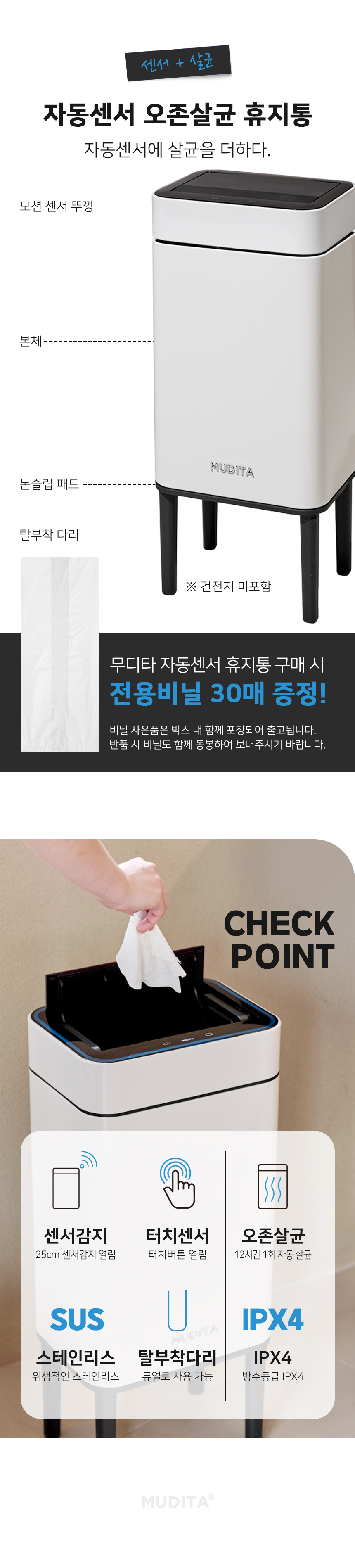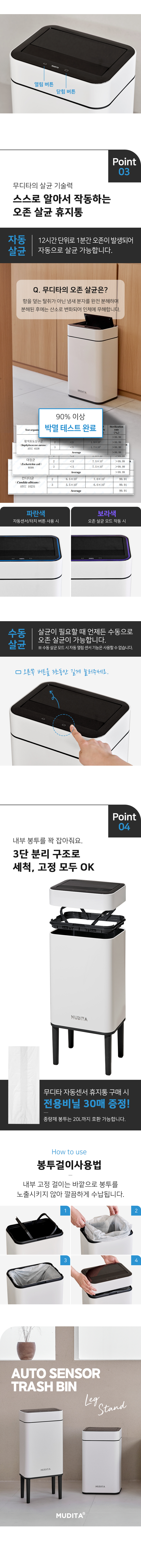리본제이 무디타 오존살균 더블 자동센서 휴지통 20L 레그스탠드 / 탈부착다리 전용봉투 포함