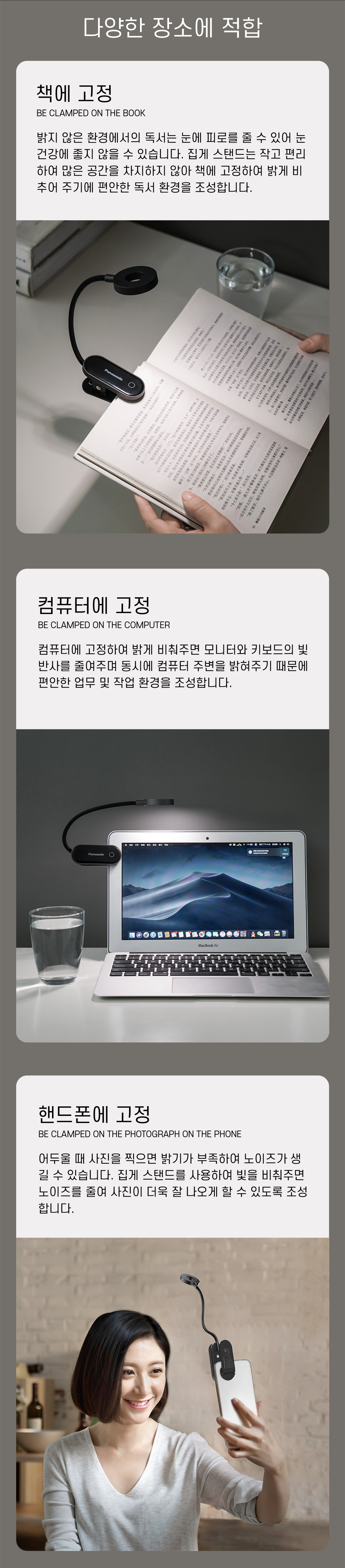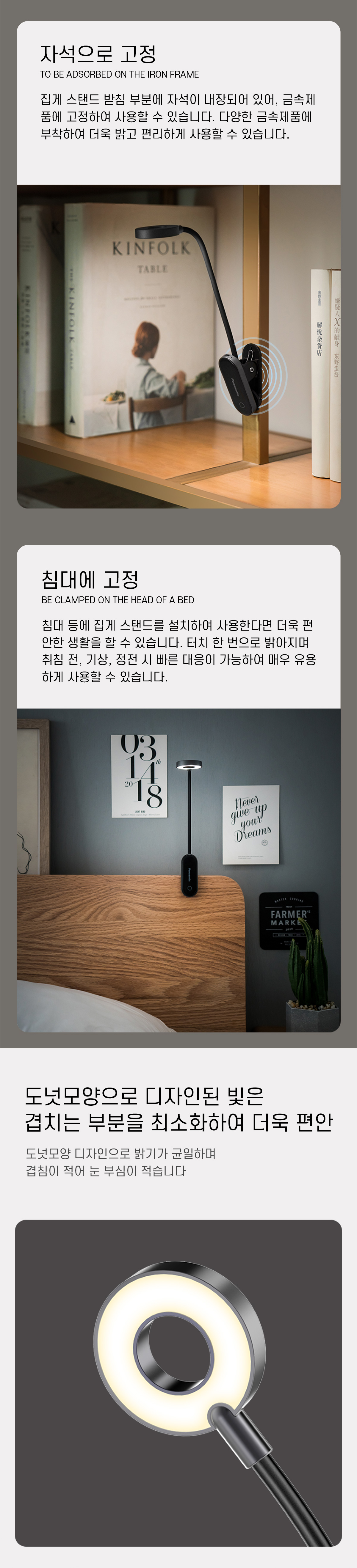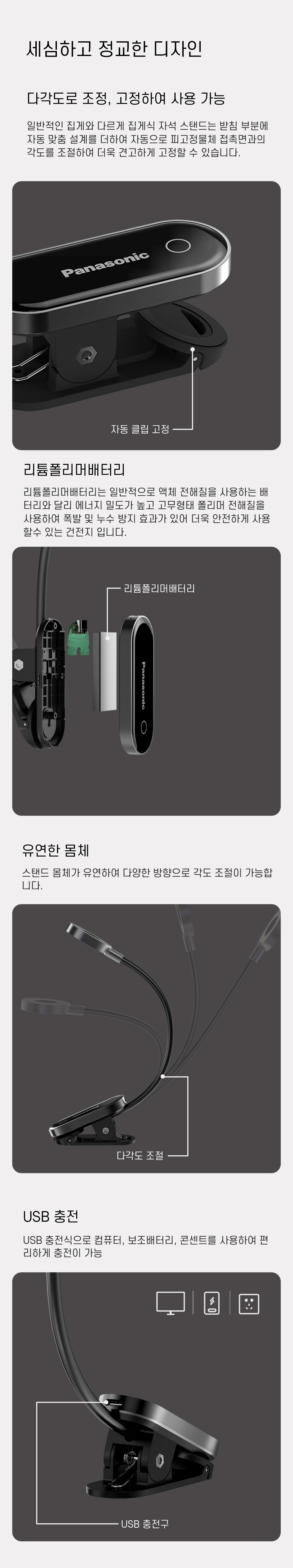 LED 무선 미니 클립 집게형 스탠드 3W USB충전형 삼색변환 밝기조절