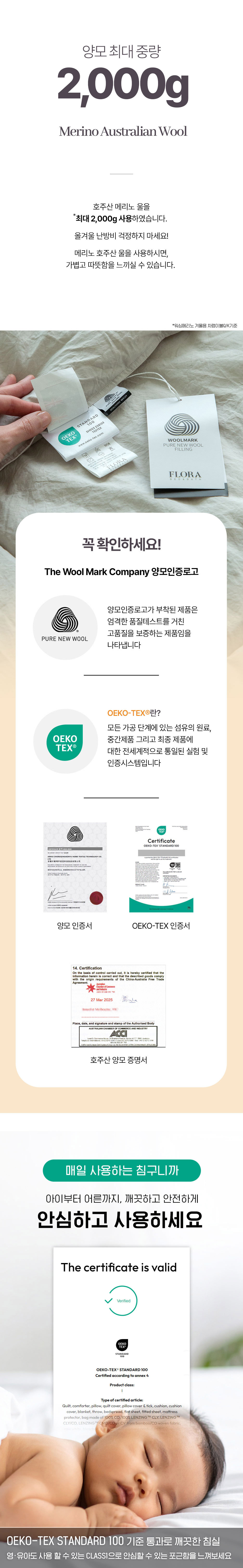 워싱 메리노울 호주산 양모이불 겨울용 SS/Q/K 3컬러