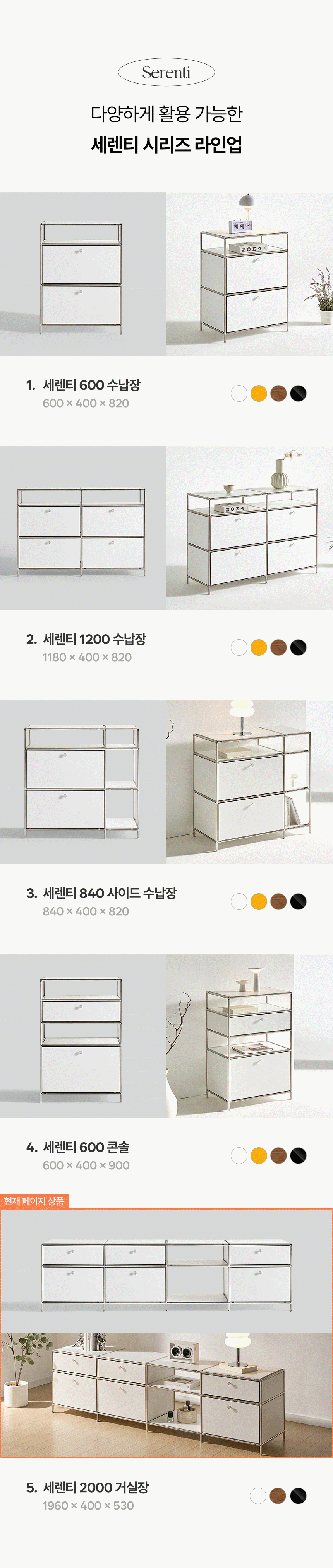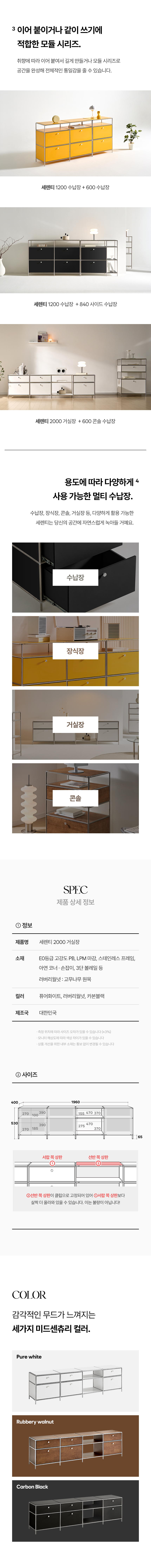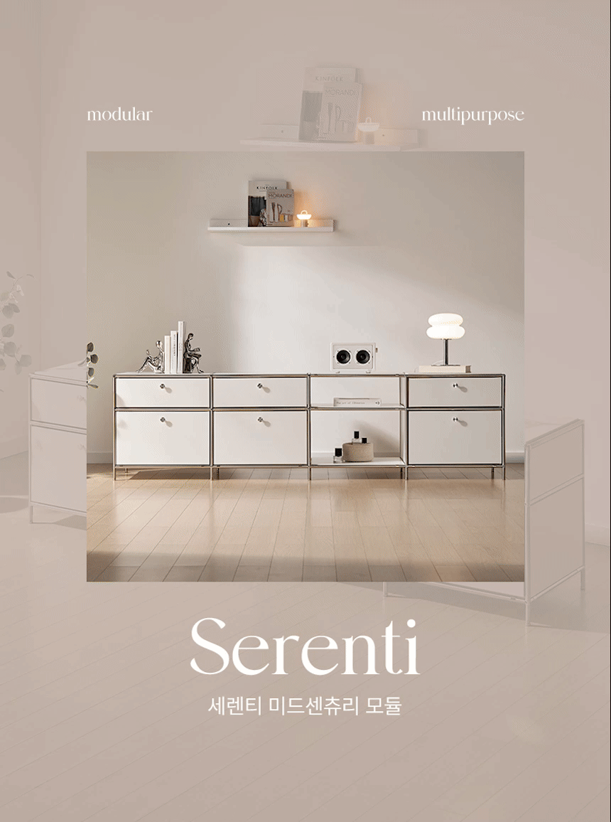 세렌티 모듈 2000 완제품 미드센츄리 높은거실장 수납 티비다이 화이트 선반장
