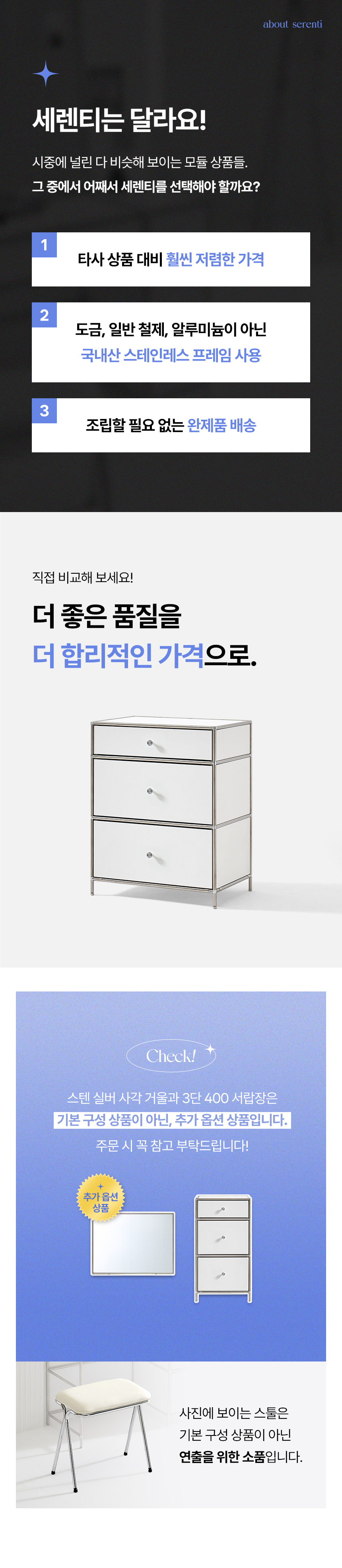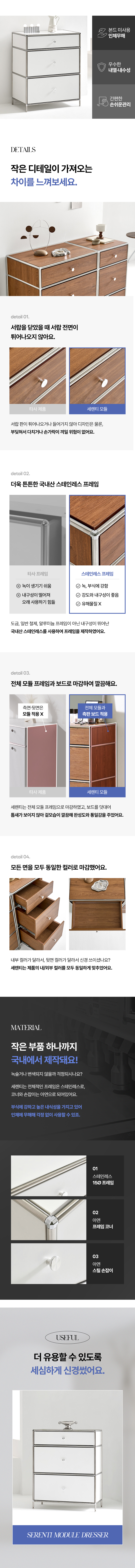 세렌티 3단 600 모듈 서랍장 미드센츄리 드레스룸 거실 다용도 수납장