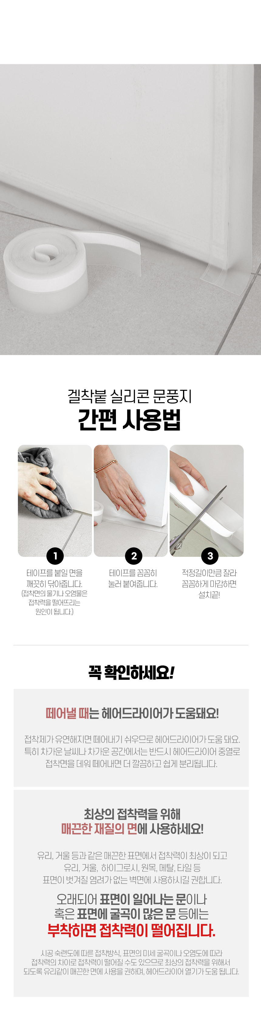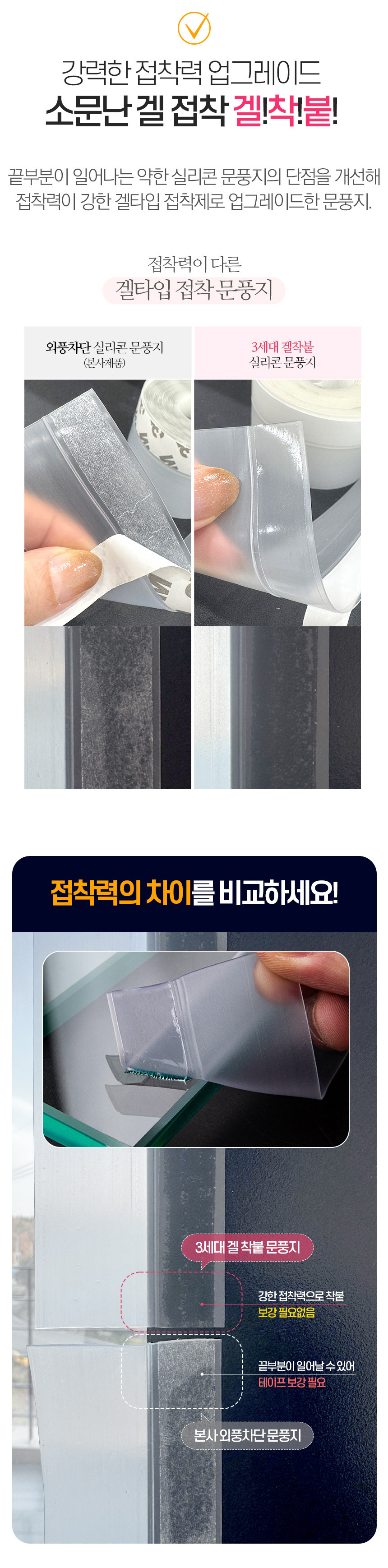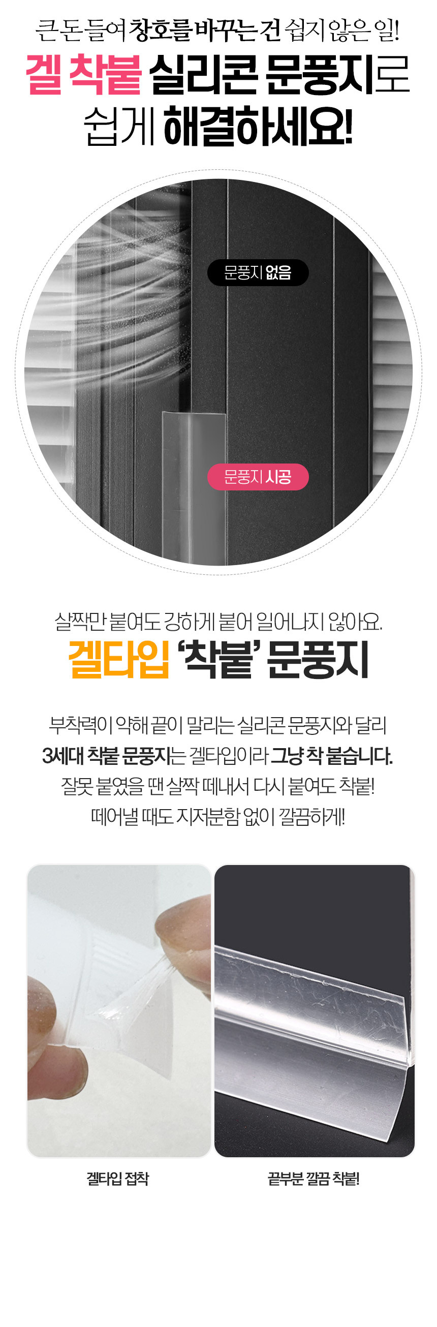 겔타입으로 붙이자마자 착 붙는 3세대 접착 강화 실리콘 문풍지 1P+1P