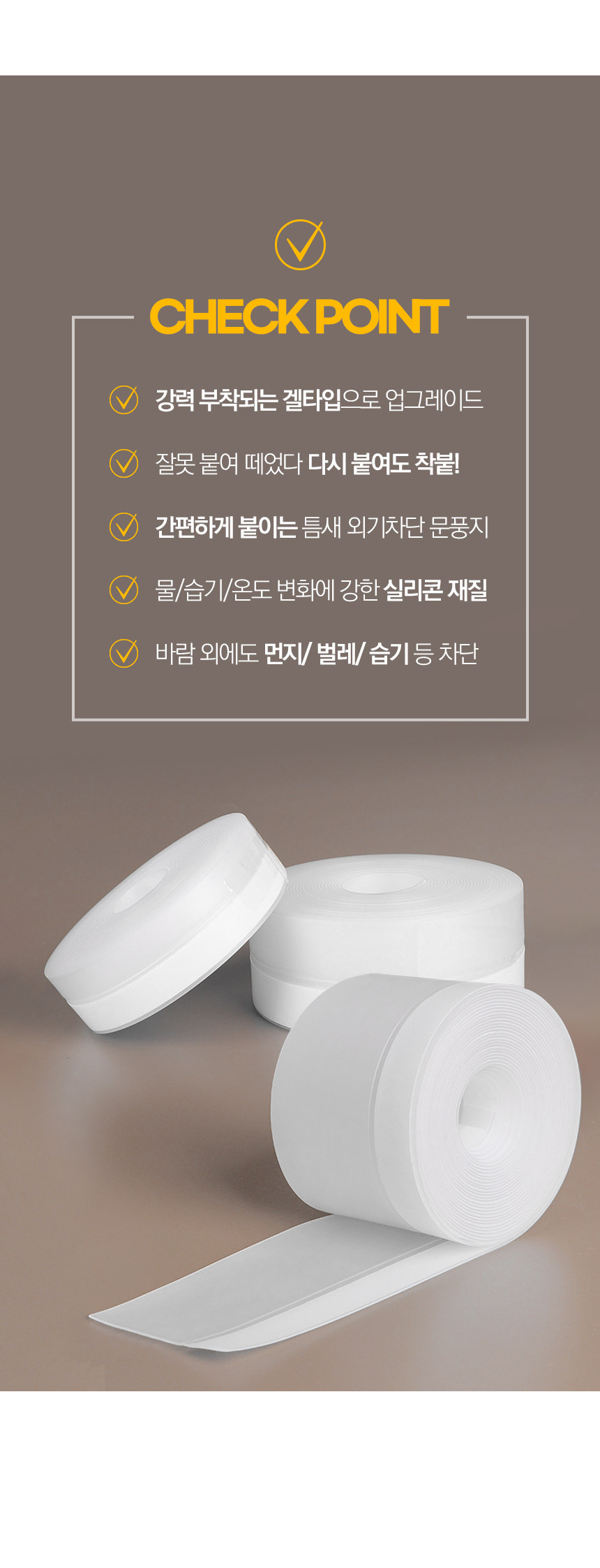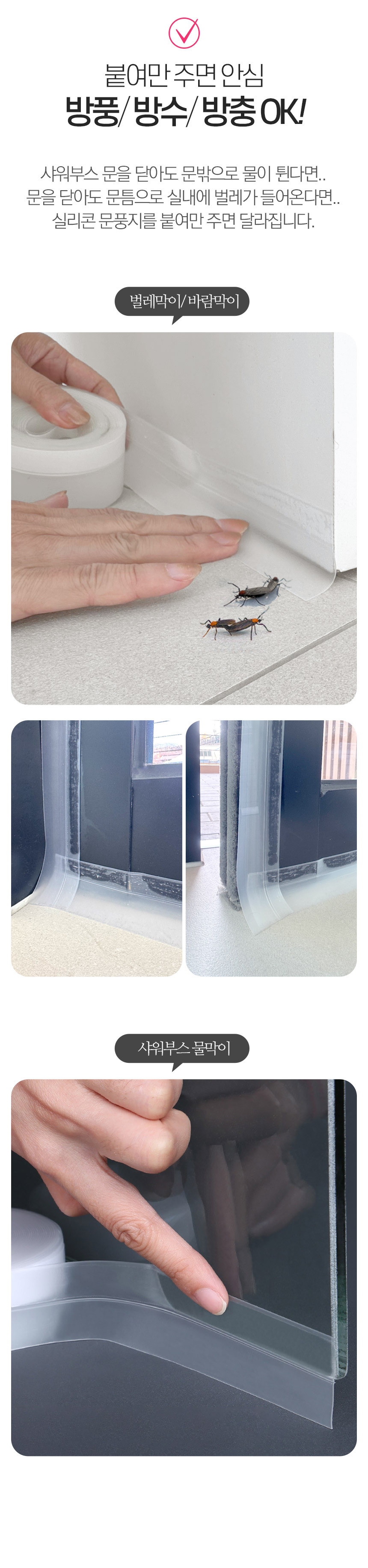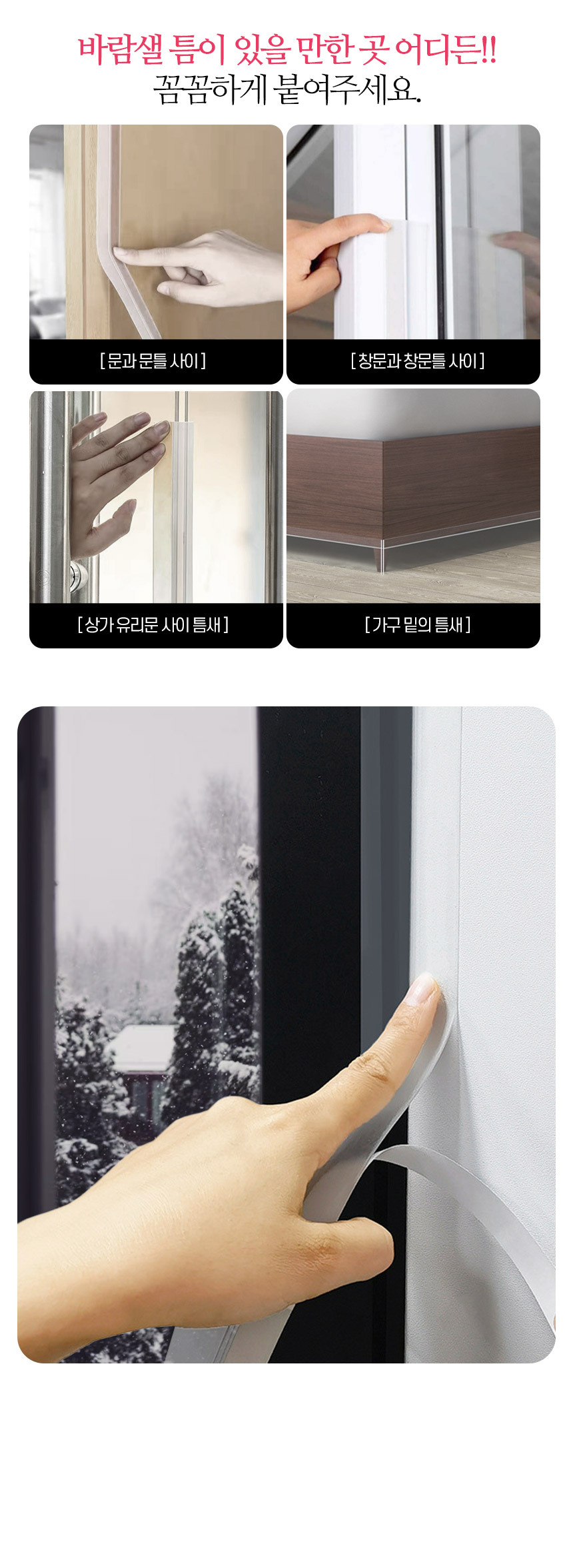 겔타입으로 붙이자마자 착 붙는 3세대 접착 강화 실리콘 문풍지 1P+1P