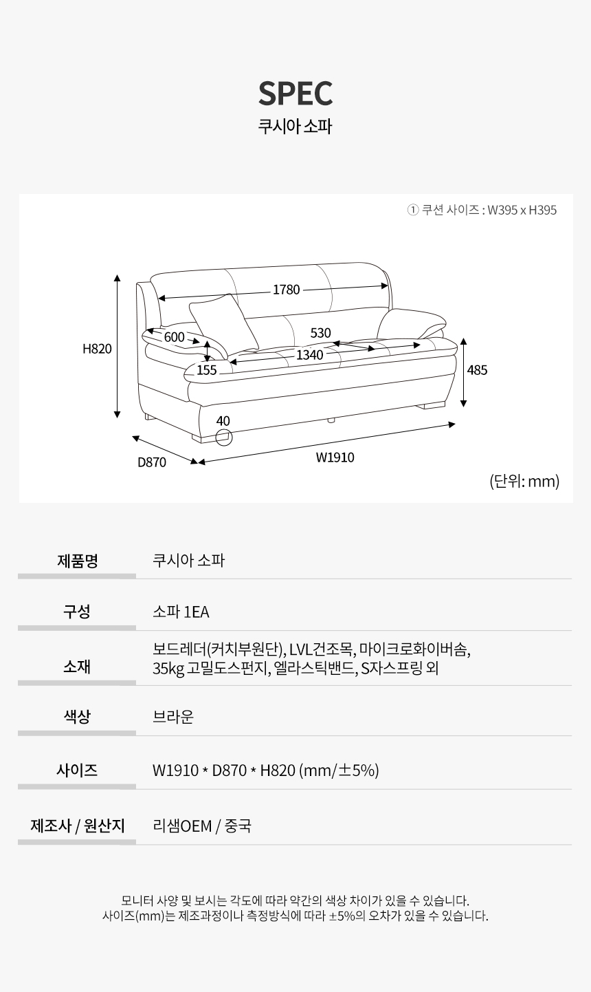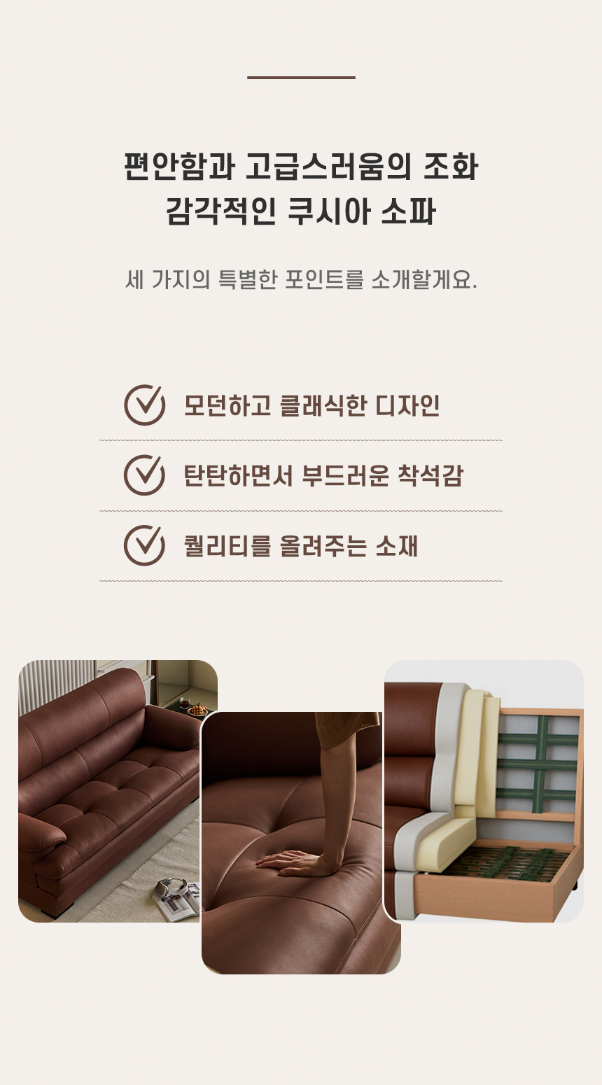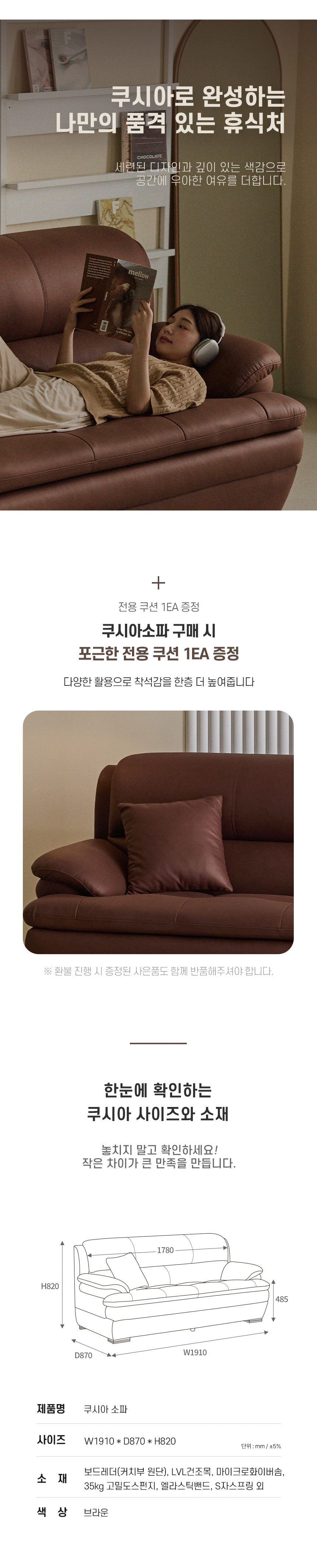파로마 쿠시아 2인용 3인용 소파 브라운