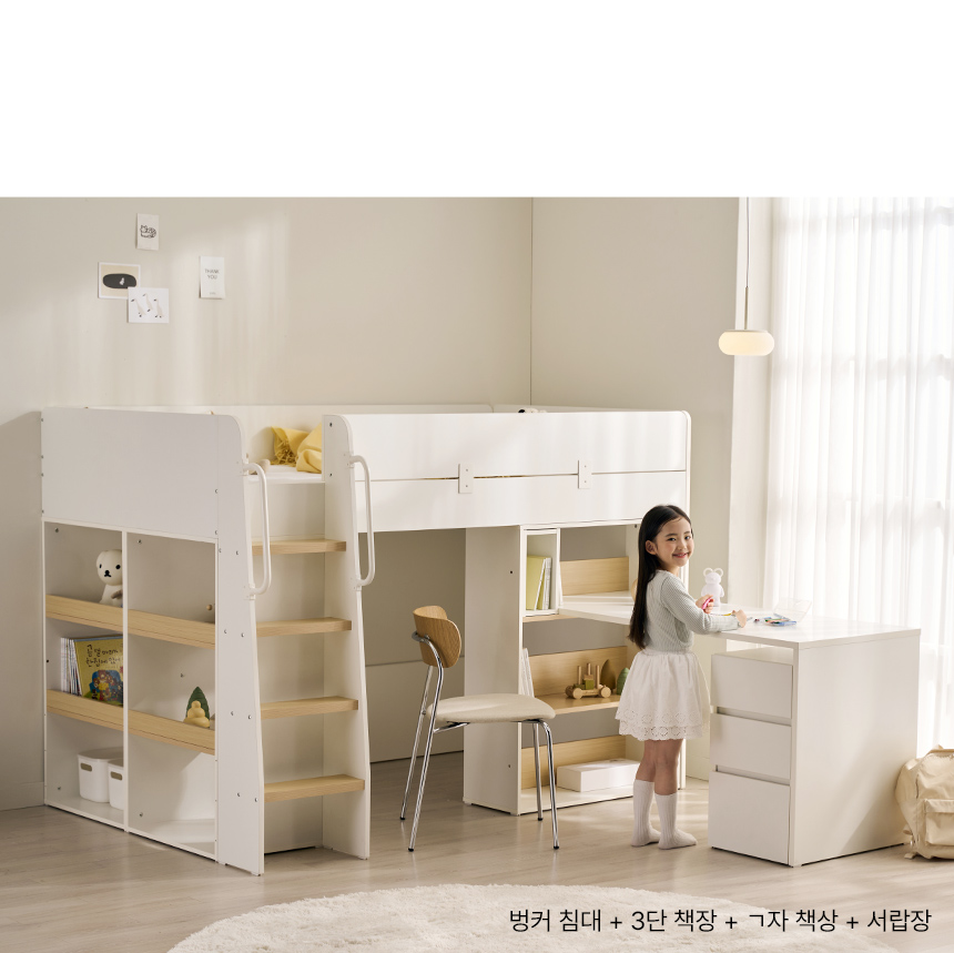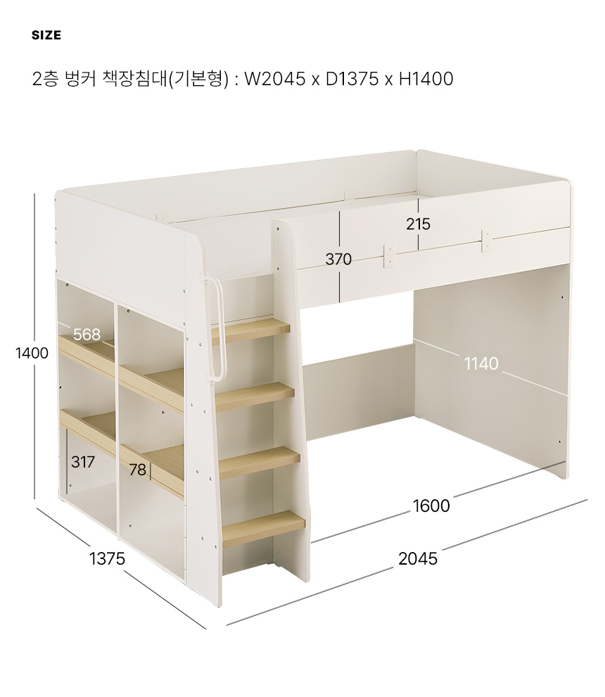 스칸디아 키즈홈 어린이 이층 벙커 책장 침대(매트제외)
