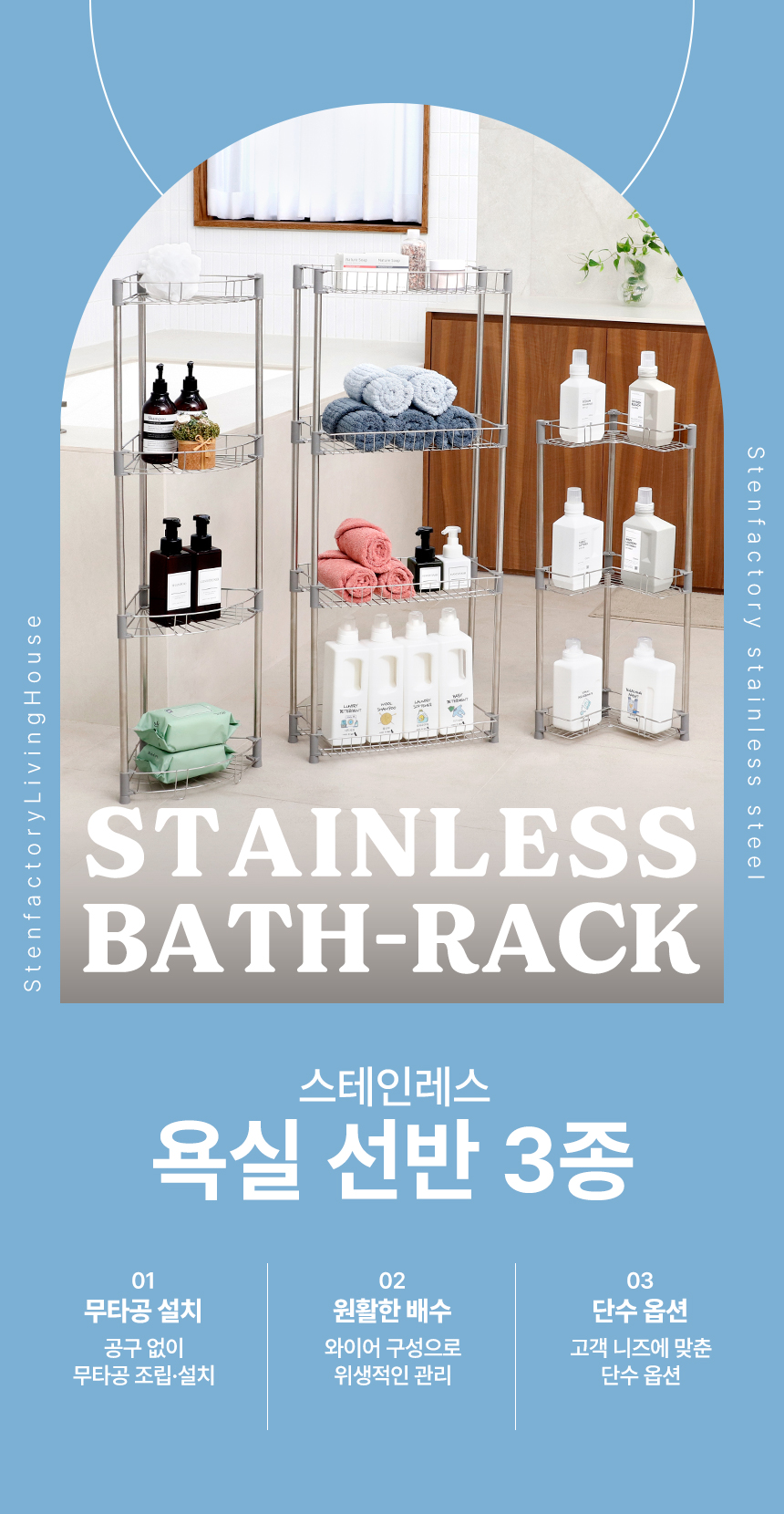 스텐 다용도 욕실 코너 선반 2단/3단/4단