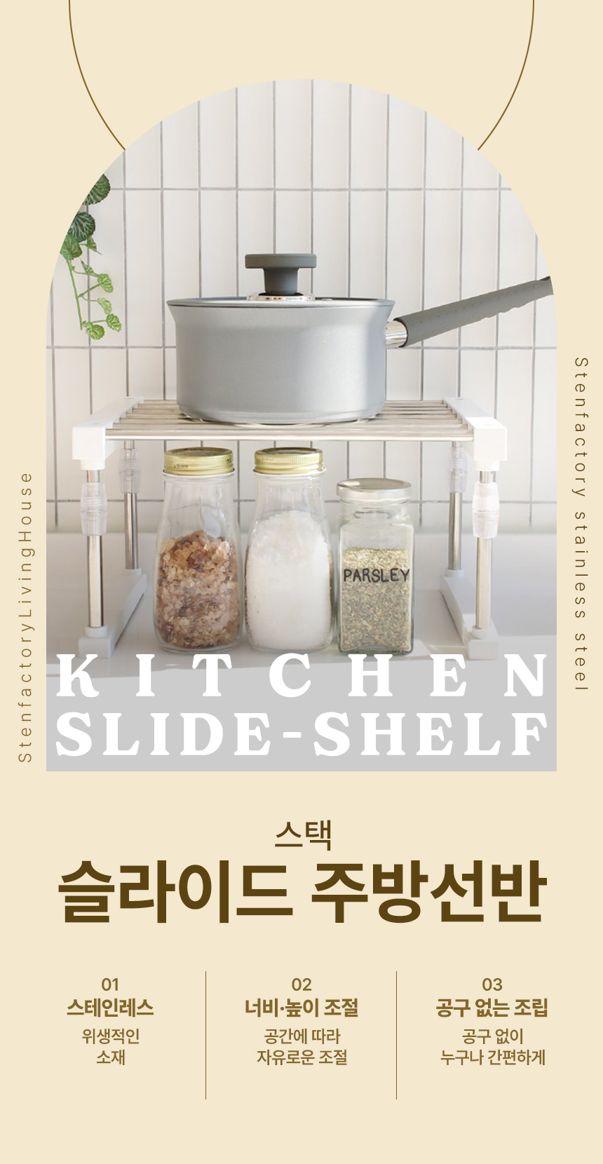 다용도 주방 하부장 슬라이드 선반 높이조절 접시 냄비 정리대