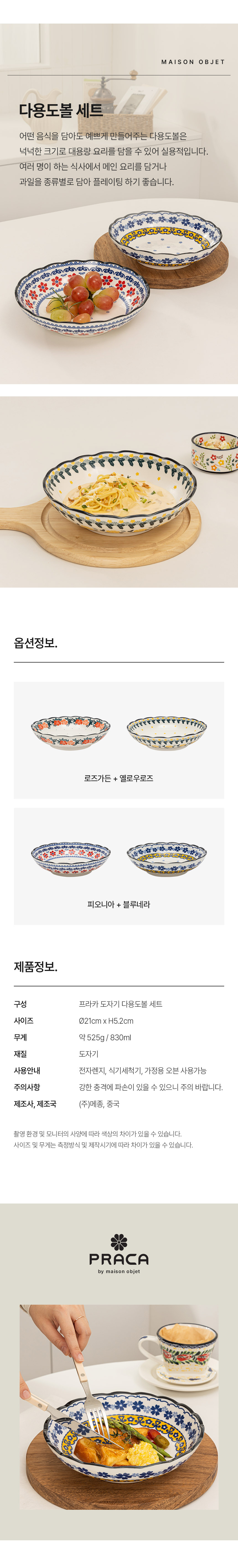 프라카 폴란드풍 도자기 다용도볼 4P 세트