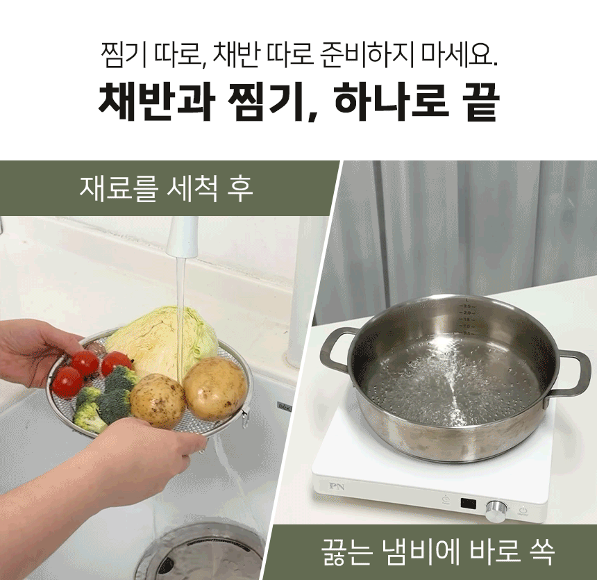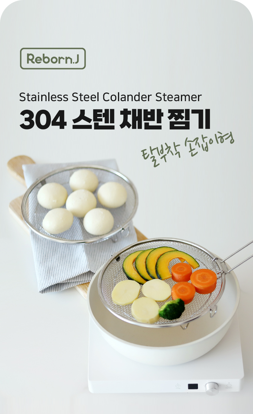 리본제이 304 스텐 채반 찜기 (탈부착 손잡이 포함) / 원형 핸들 채반 야채 찜기 스티머