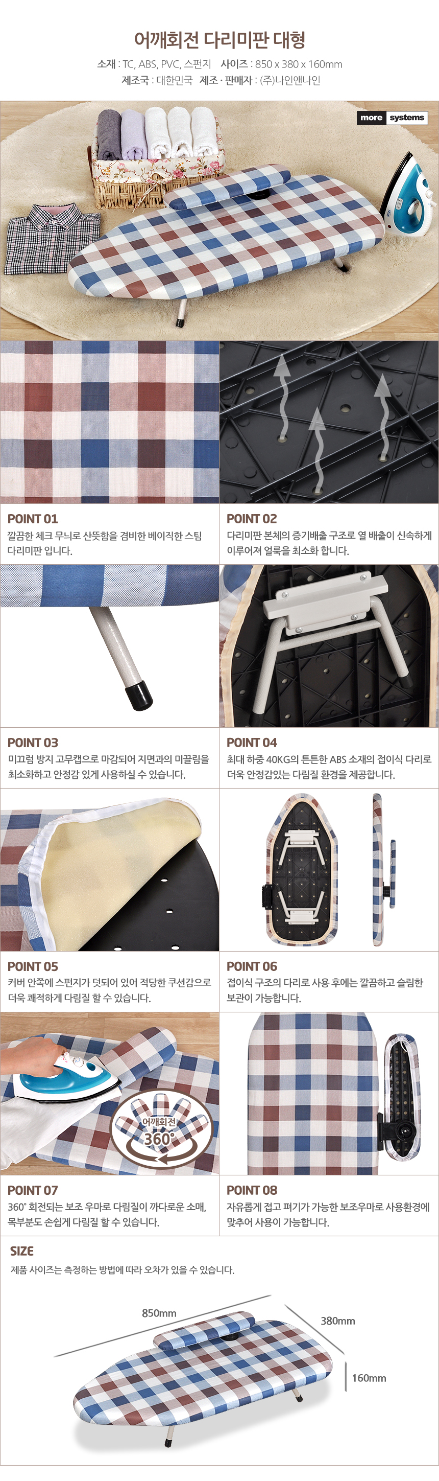 모아시스템즈 어깨 회전 다리미판 대형 커버랜덤 스팀 다림판 다림질판