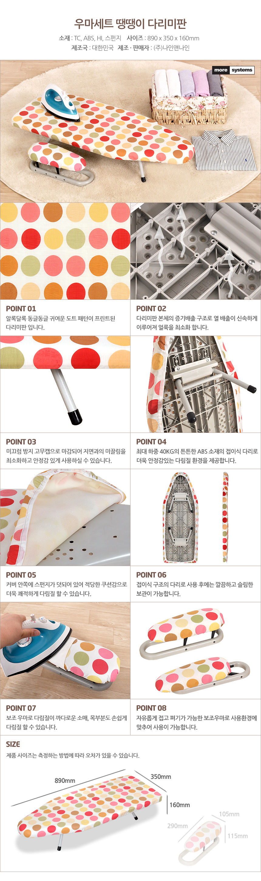 모아시스템즈 우마 분리형 땡땡이 다리미판 대형 스팀 다림판 다림질판