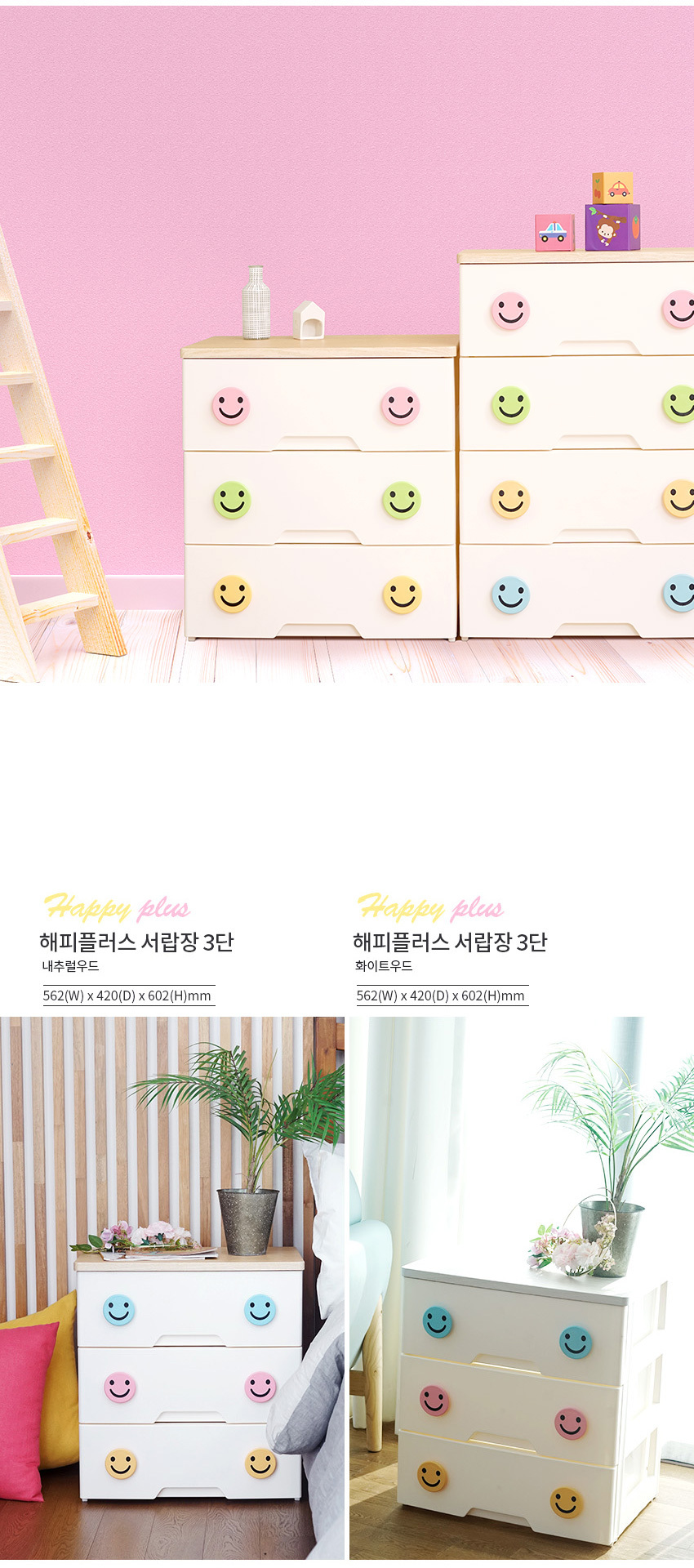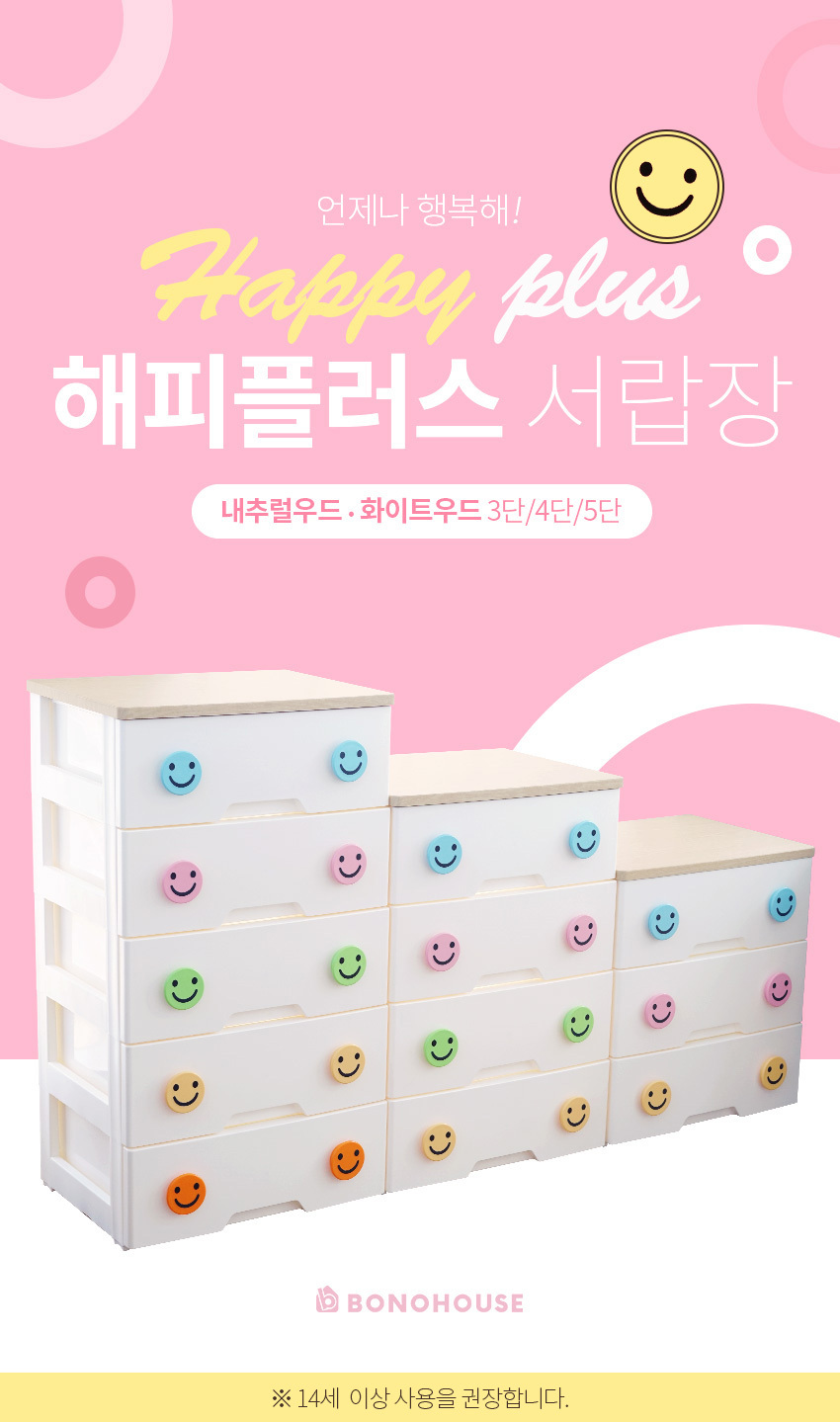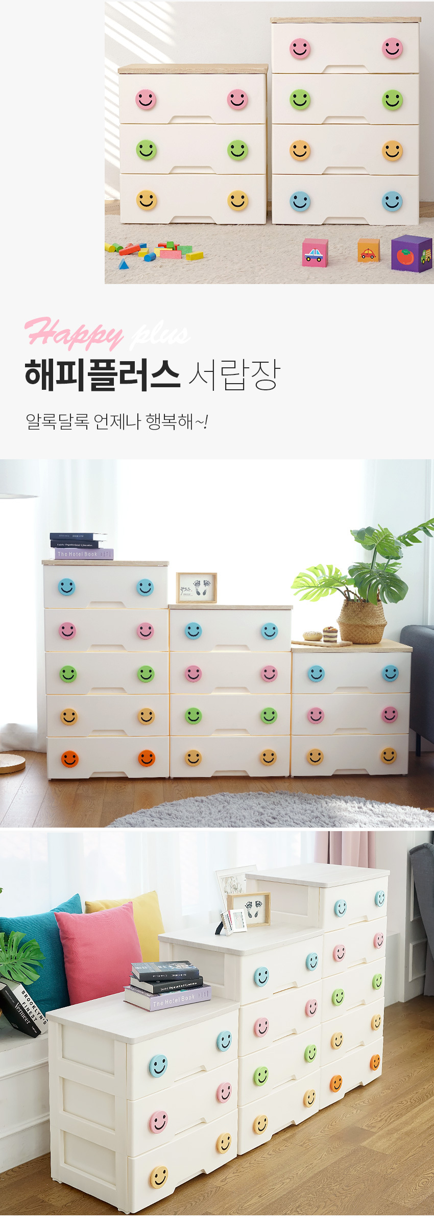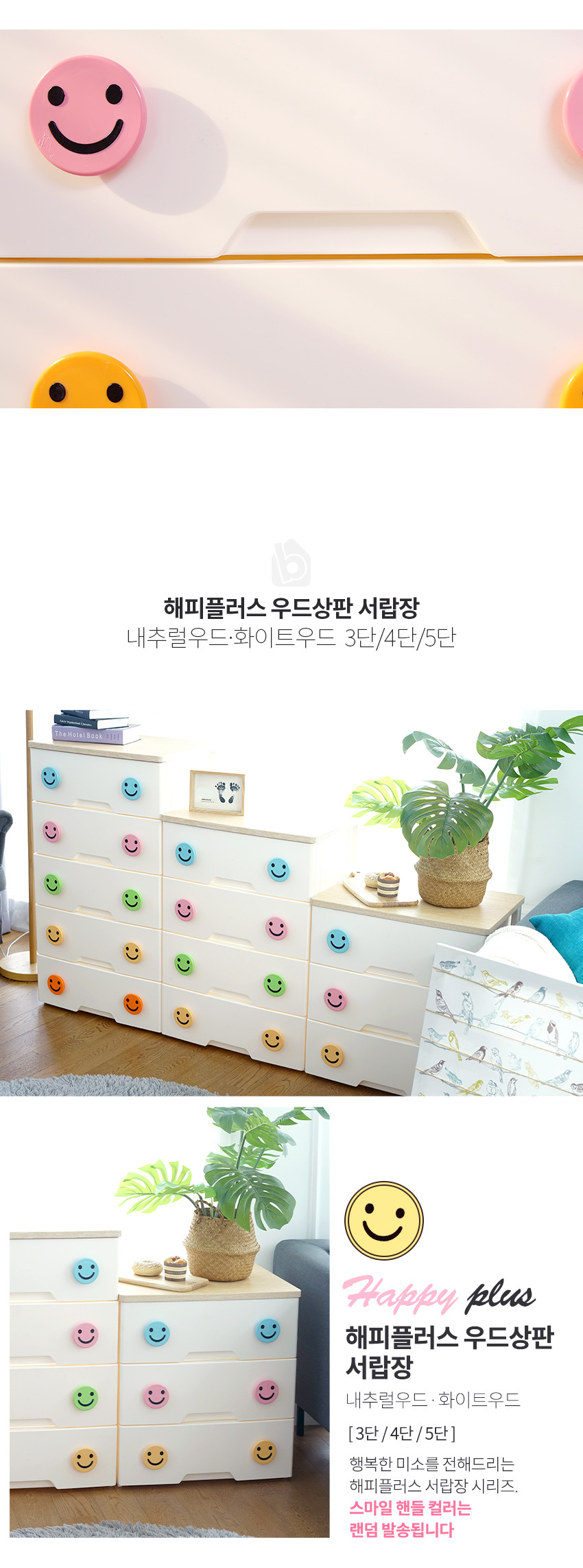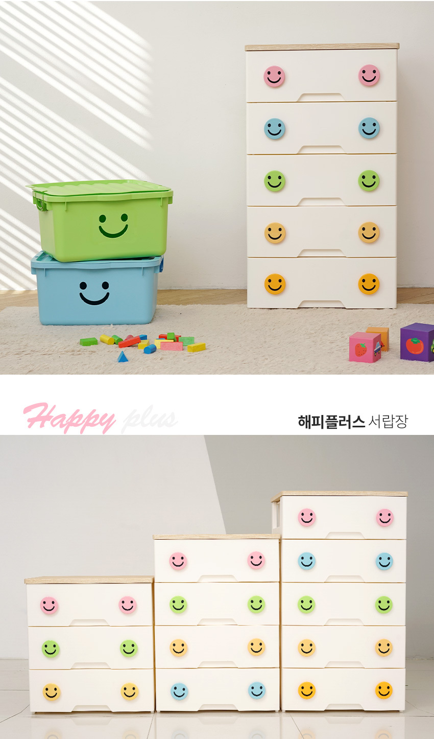 해피플러스 서랍장 5단 모음전 유아 키즈 아이방 베이비장 옷장 드레스룸 수납 정리함 (3 상판)