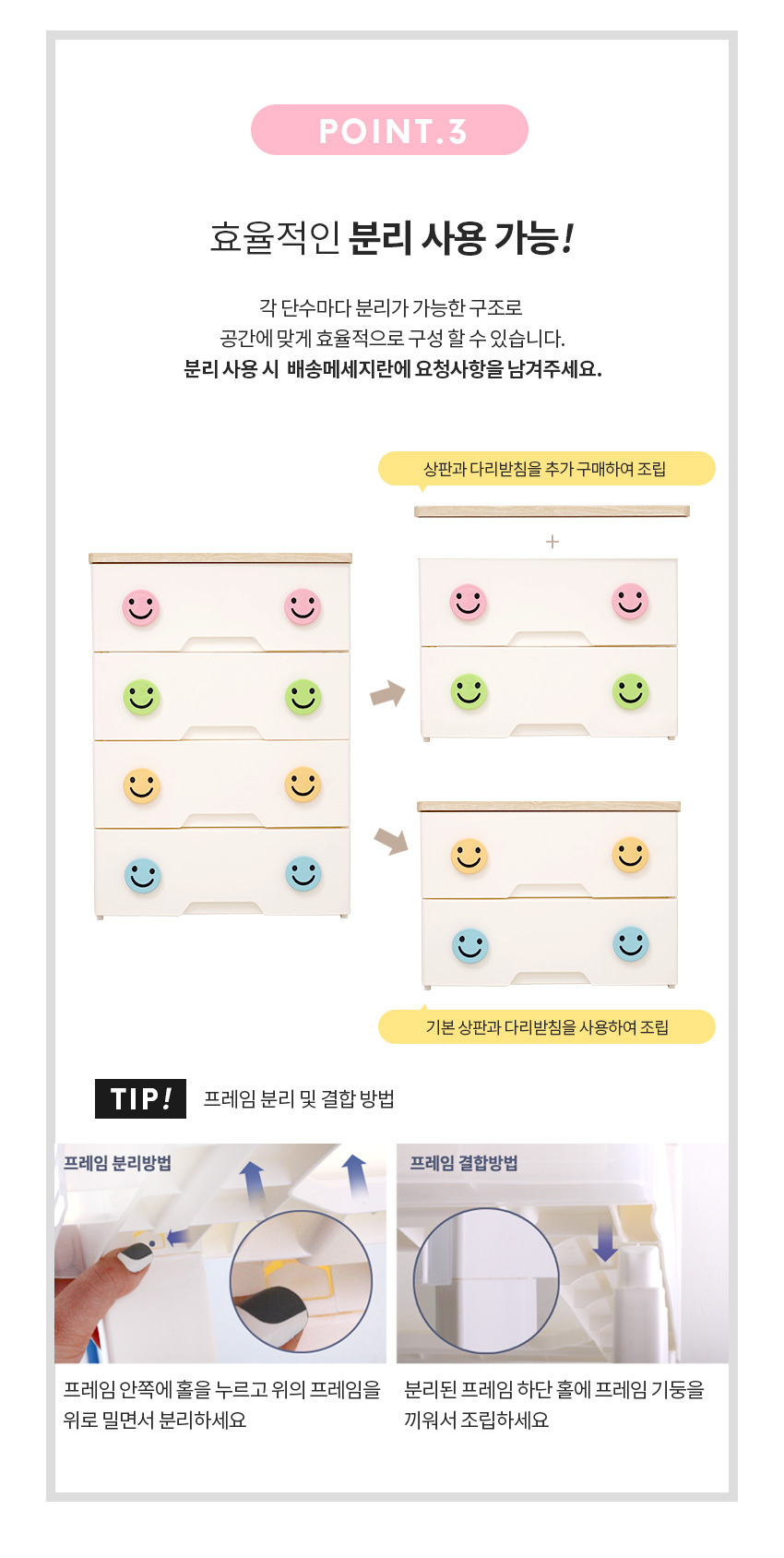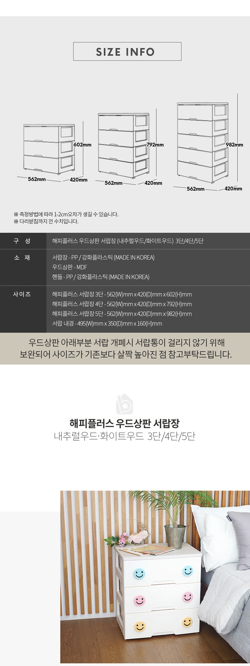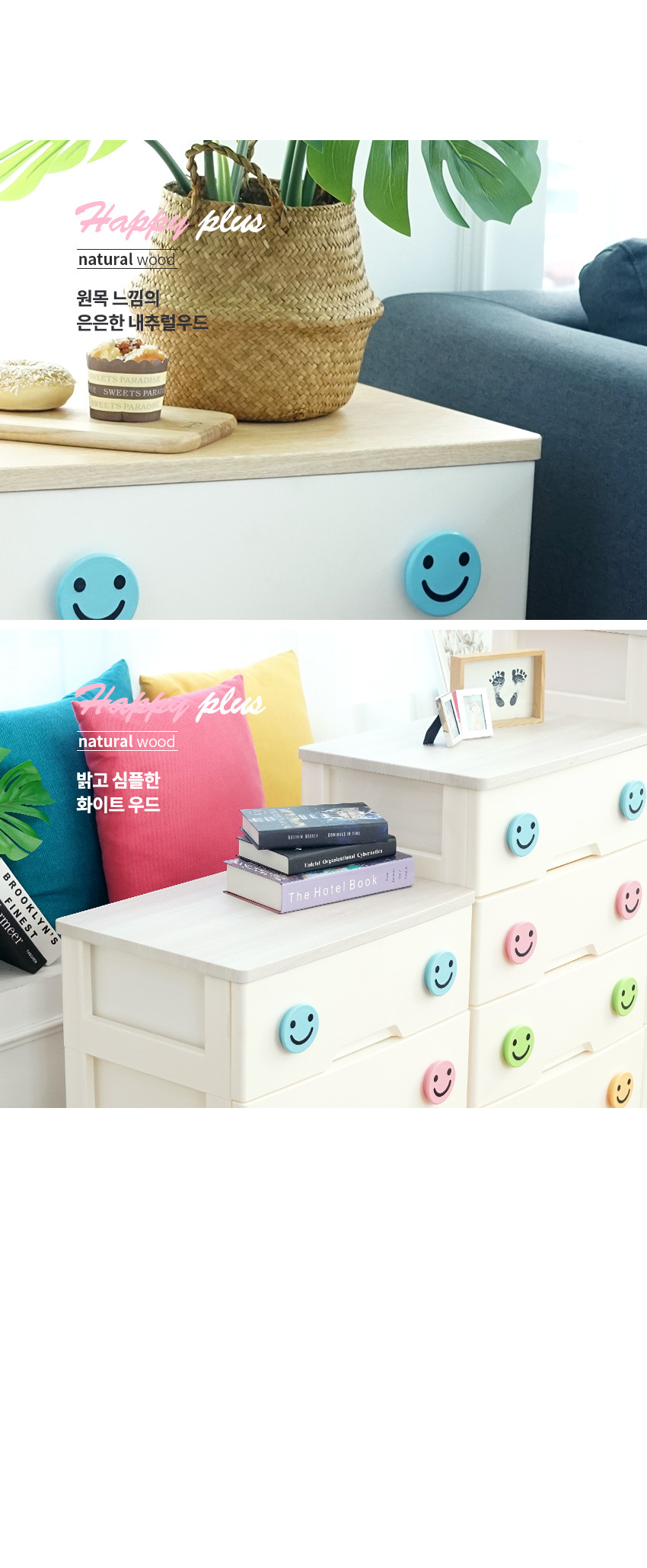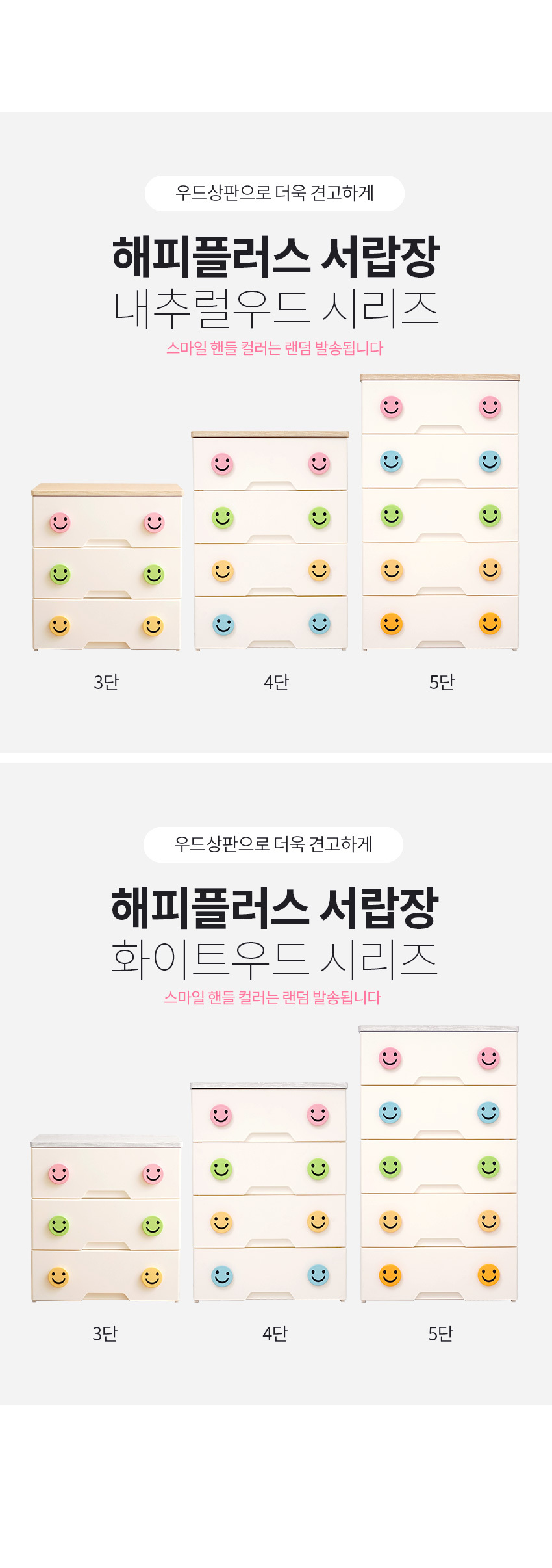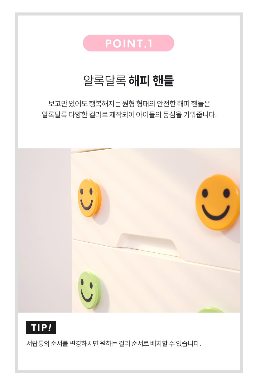 해피플러스 서랍장 5단 모음전 유아 키즈 아이방 베이비장 옷장 드레스룸 수납 정리함 (3 상판)