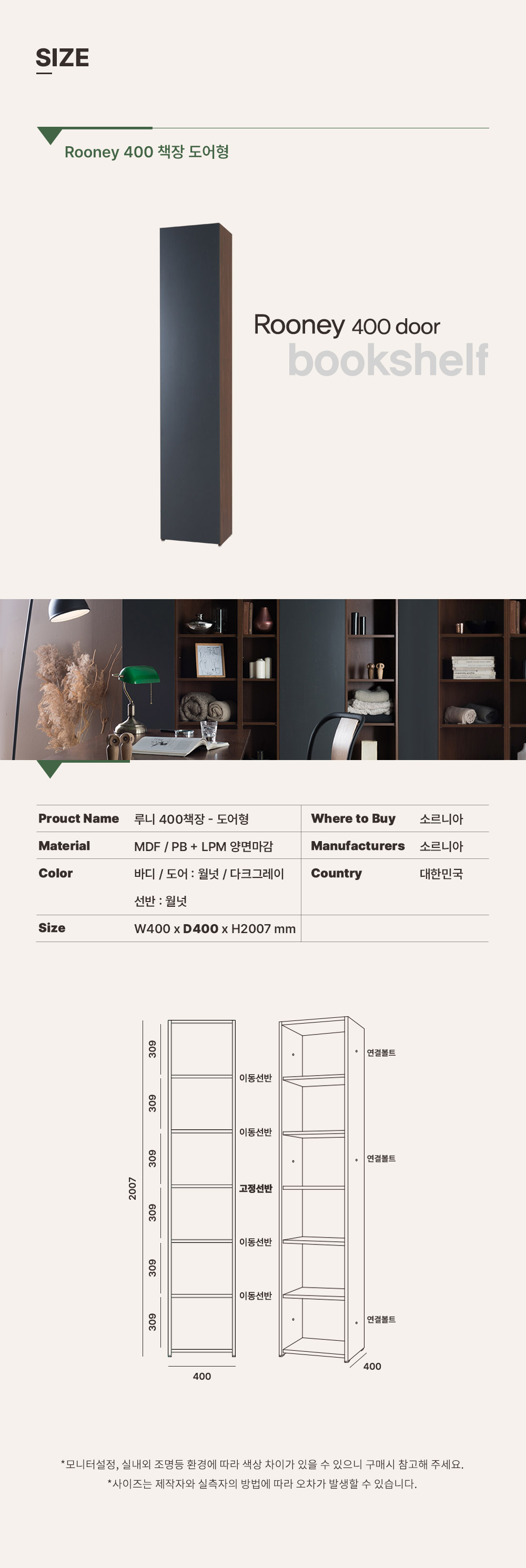 루니 400 도어형 수납 책장