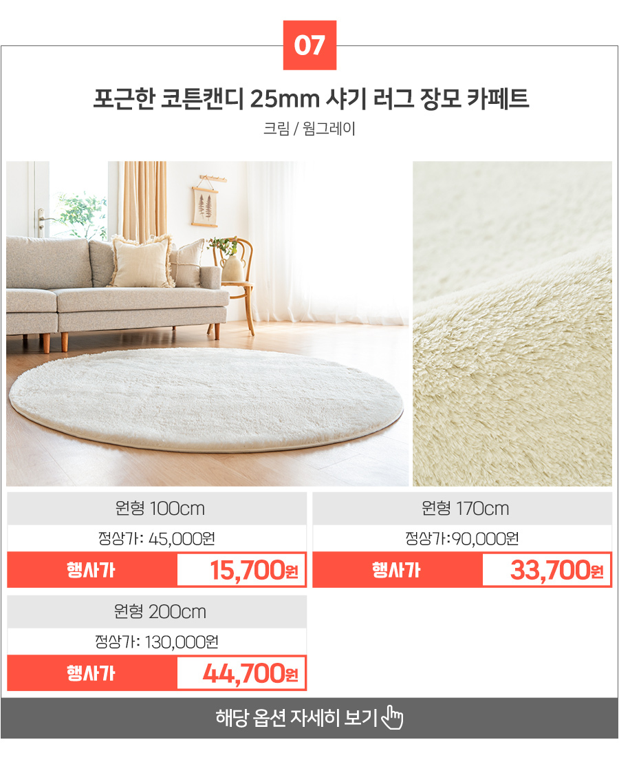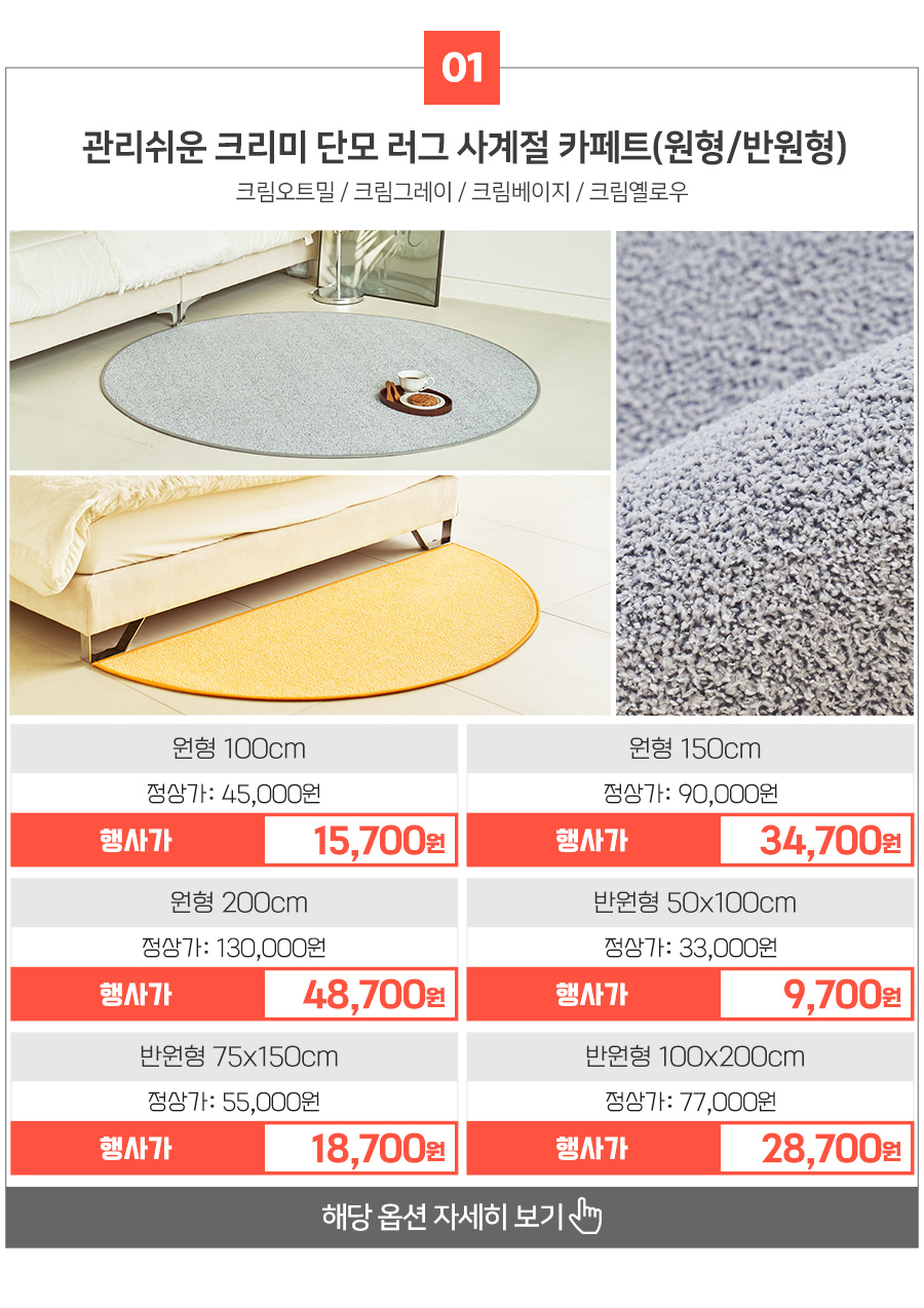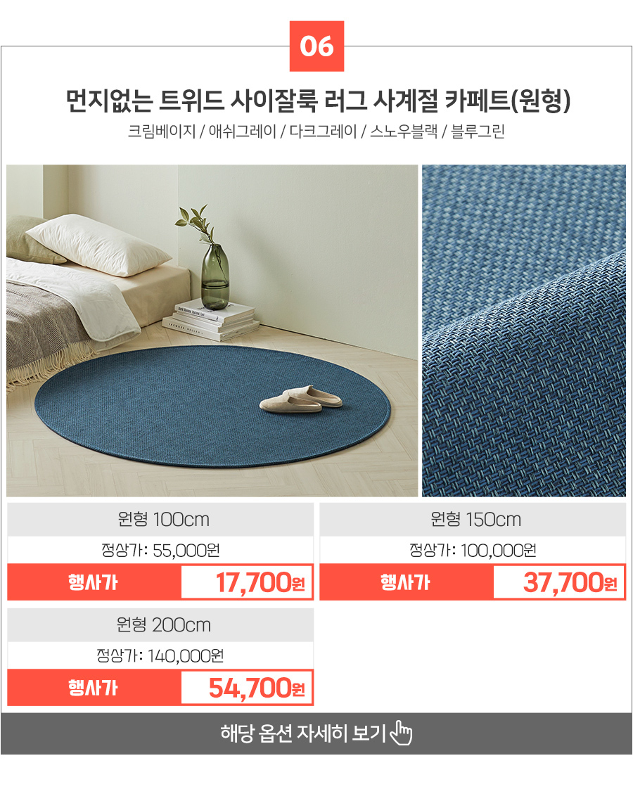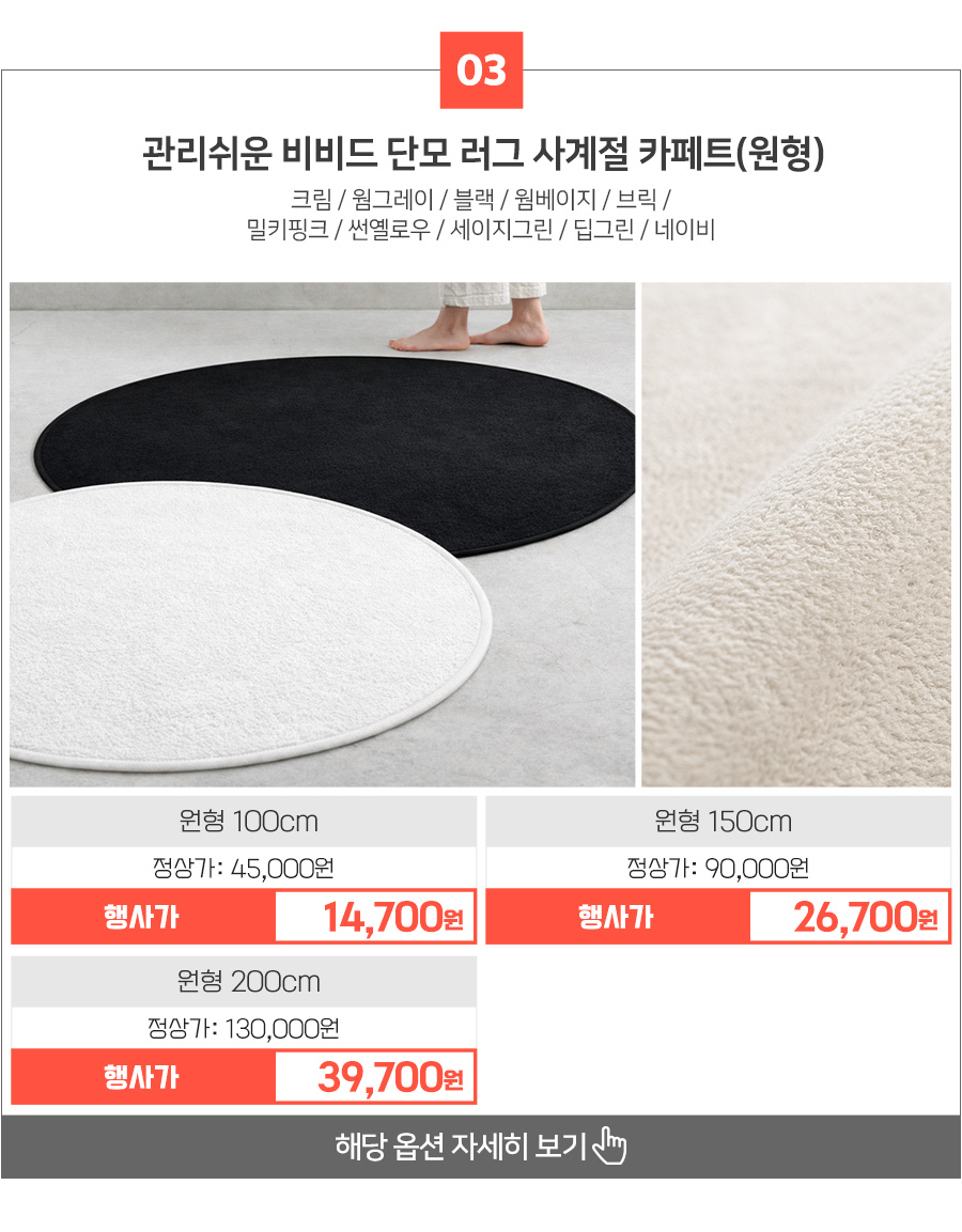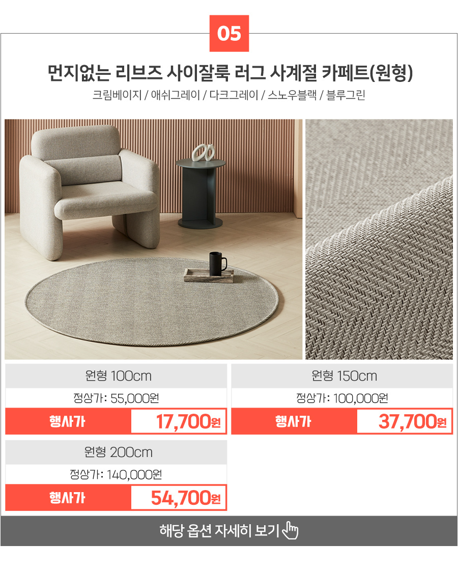 [한샘 Pick] 소음방지 포인트 원형 러그 카페트 7종