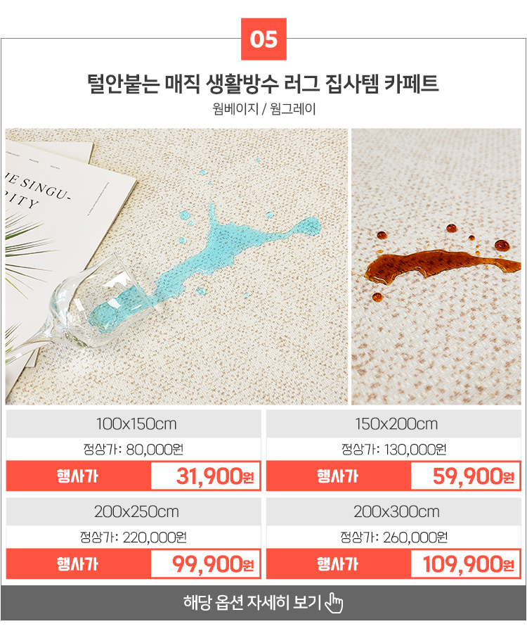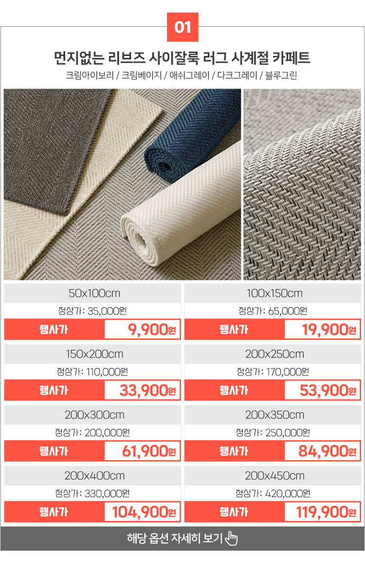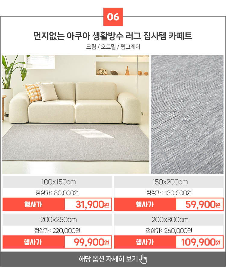 인기 먼지없는 워셔블 러그 6종 (사이잘/방수/사계절)