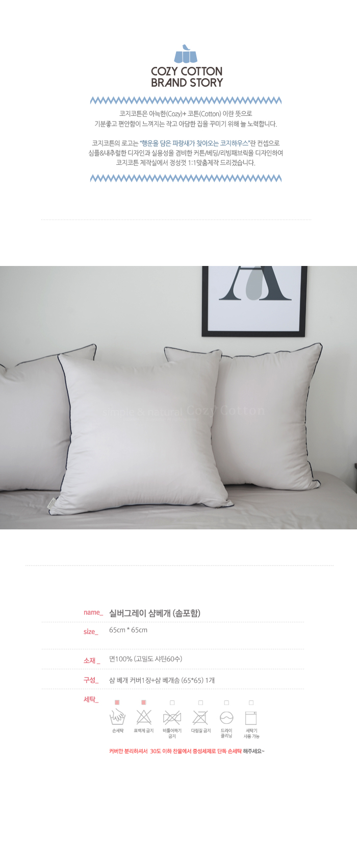 [코지코튼]실버그레이 샴베개-65x65솜포함