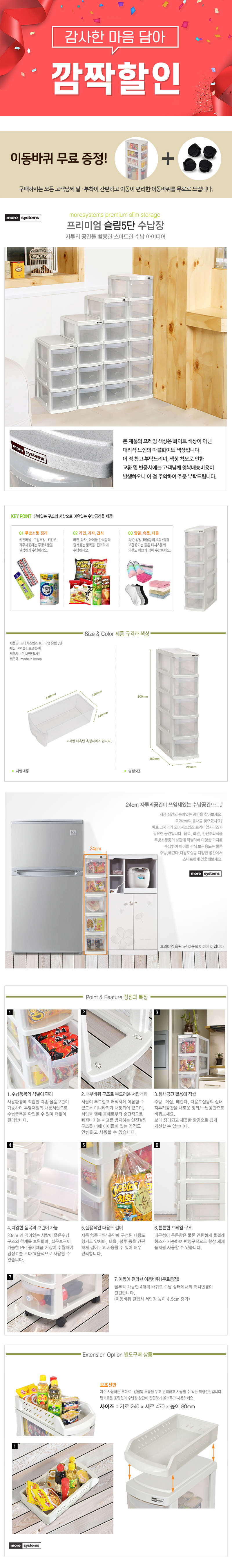 모아시스템즈 프리미엄 슬림 5단 플라스틱 서랍장 주방수납장